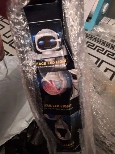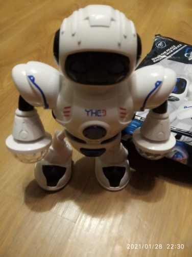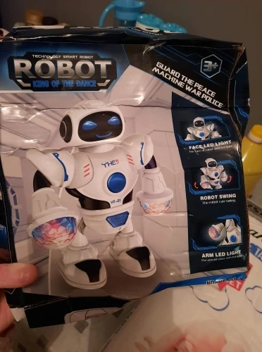 Робот работает, поет песню вроде на китайском, двигается влево и вправо и светится. Доставка было очень долгой почти 70 дней и продавец не упаковал робота даже в пупырчатую пленку, коробка вся помята, но робот целый.