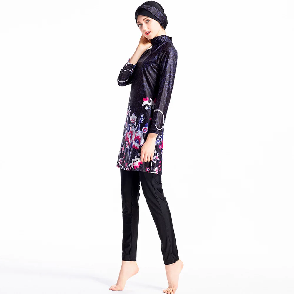 Новый Мусульманский купальник Burkini из трех предметов, купальник без подкладки, с принтом, 2020