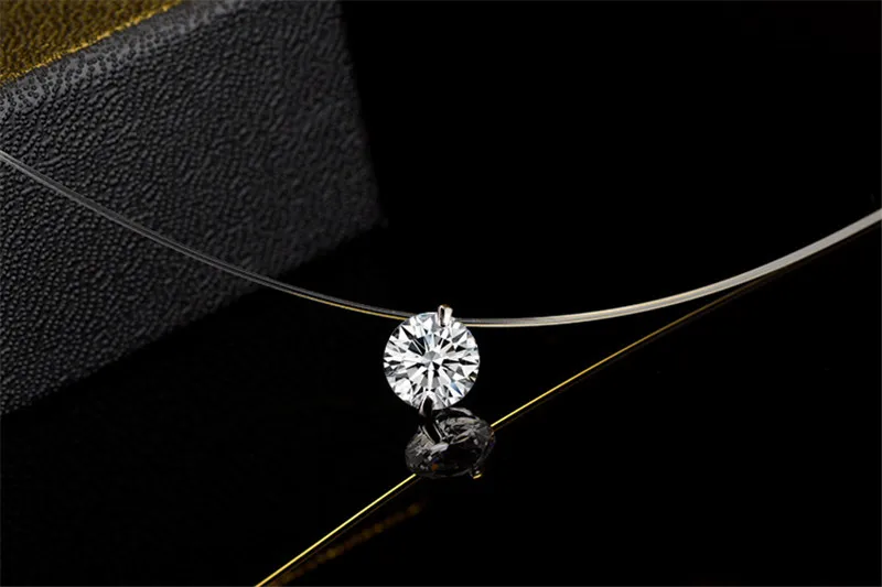 Подлинное ожерелье из стерлингового серебра 925 пробы со стерео прозрачной леской невидимка ожерелье для женщин 5A Cz замки цепочка подарок на день Святого Валентина