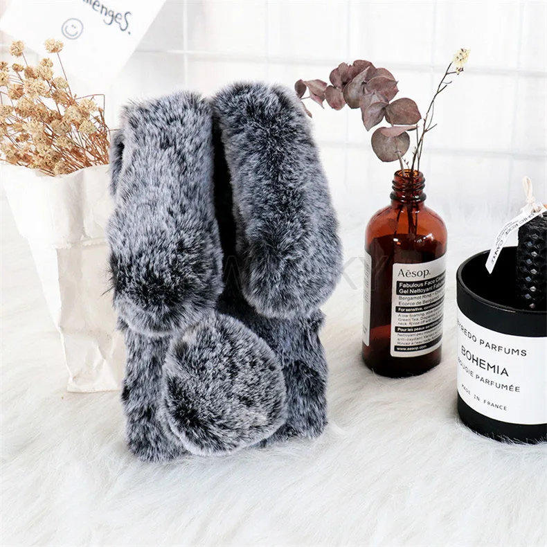 Чехол с кроличьим мехом для Huawei P Smart Plus Nova 3i 3 3E 4 4E M...