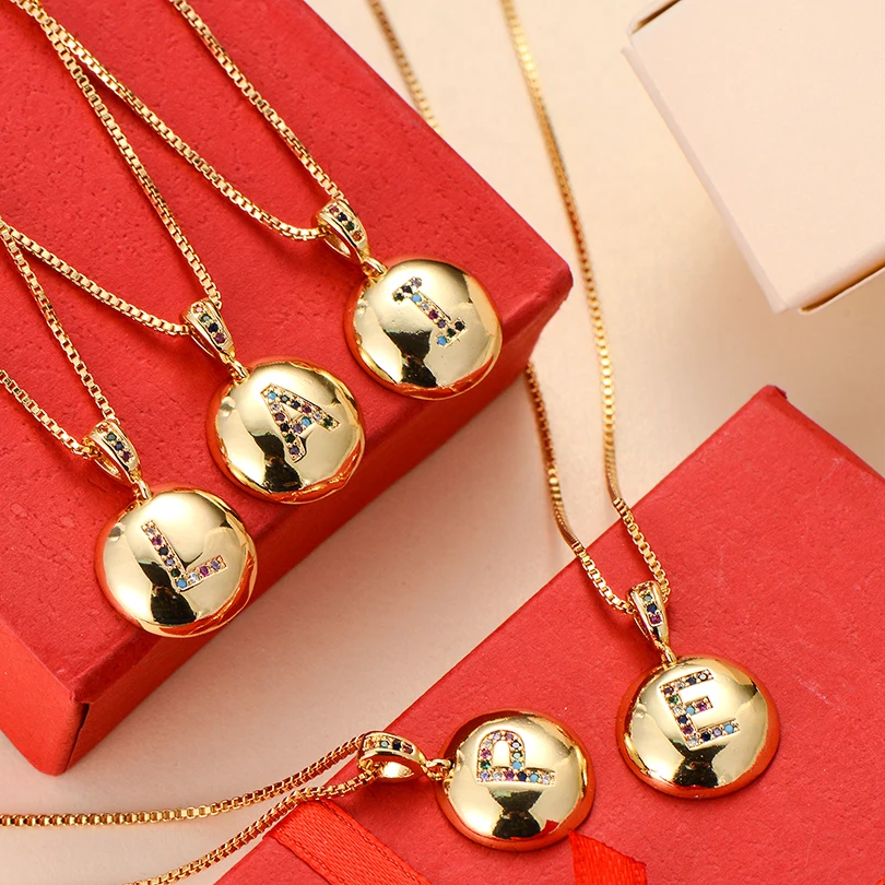 Медное ожерелье Pipitree с кубическим цирконием, с буквами алфавита, для женщин, для влюбленных, золотой цвет, Круглый Кулон, имя, начальные ожерелья, ювелирные изделия