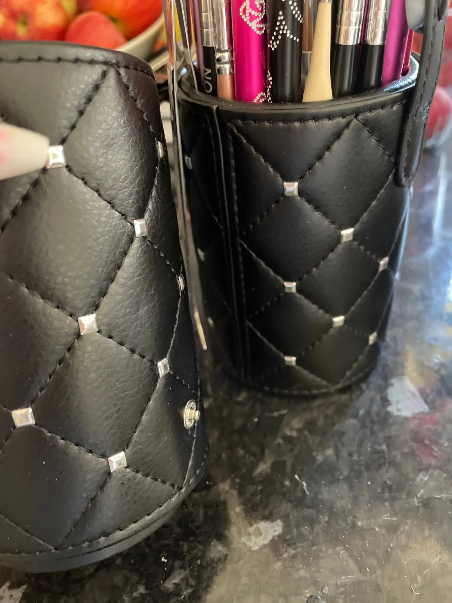 Абсолютно потрясающий держатель кисти + чехол! Я заплатил стандартную стоимость доставки AliExpress, и он прибыл в течение 14 дней. Выглядит гламурно, роскошно и качество высокое! Очень красивый мягкий на ощупь искусственный кожаный стеганый, я абсолютно рекомендую этот продукт, и продавец спасибо iFashion Beauty Store!