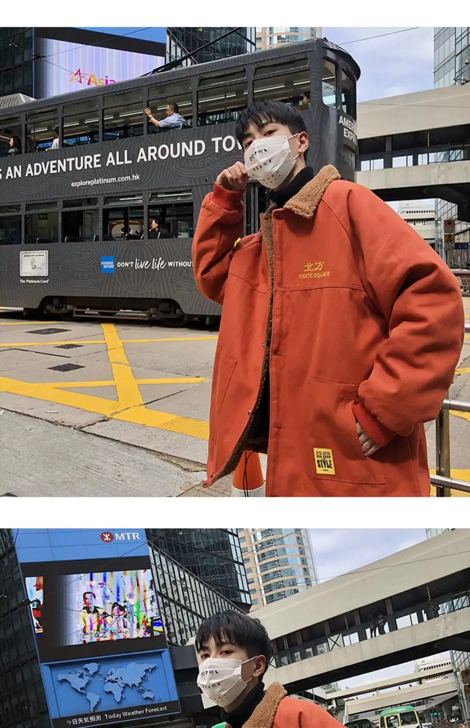 Парка мужская зимняя утепленная, с отложным воротником, в стиле Харадзюку