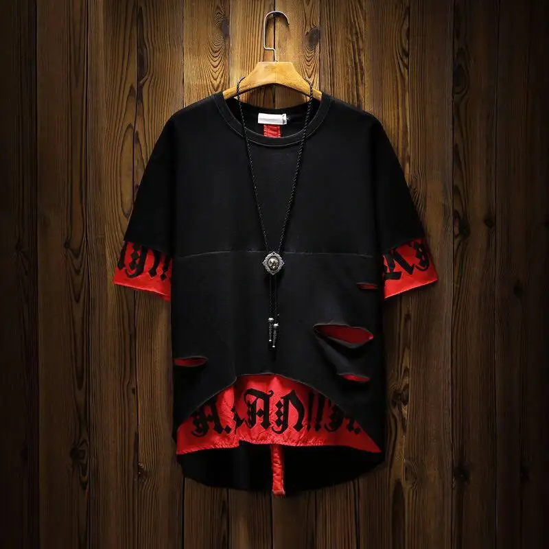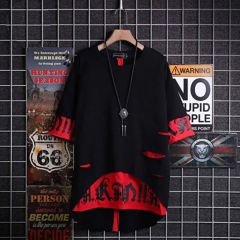 Модная мужская футболка в стиле хип-хоп, свободная и модная, с коро...