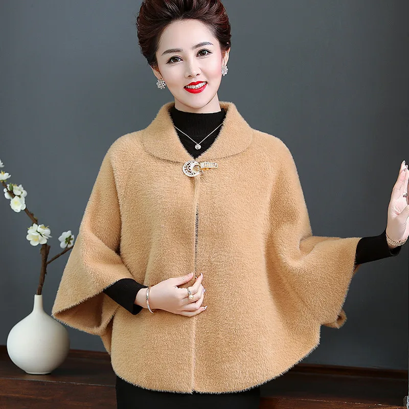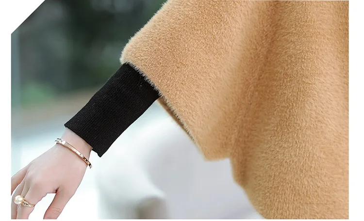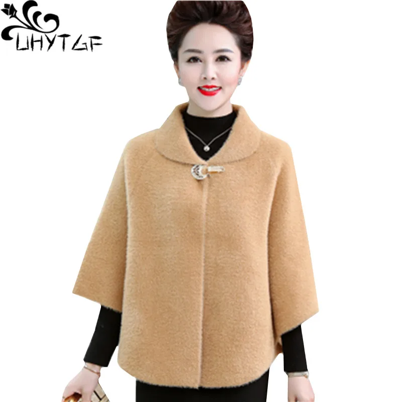 Шерстяное пальто UHYTGF, короткая однотонная норковая кашемировая куртка с рукавами летучая мышь, размера плюс свободного кроя, 814, для осени и зимы