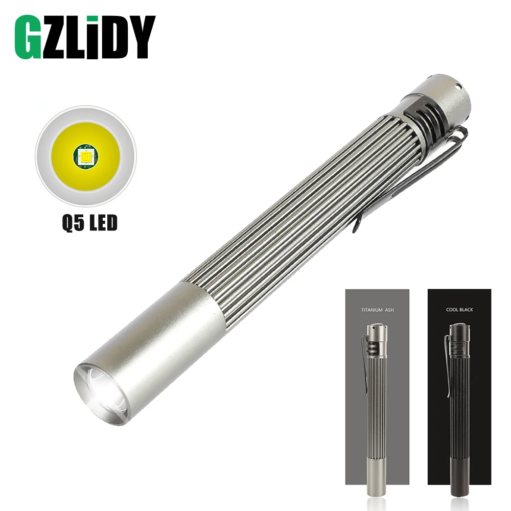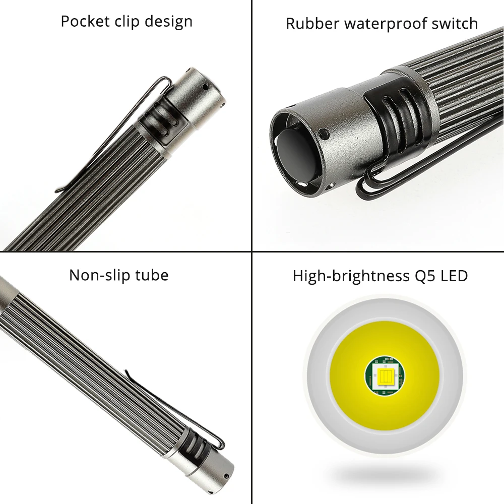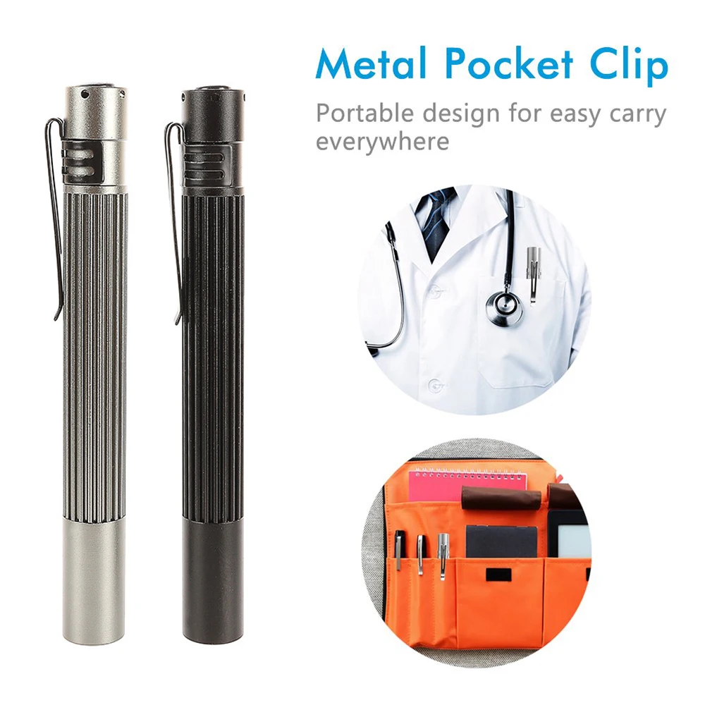 Миниатюсветильник ный светодиодный фонарик, светильник ная ручка с карманным зажимом, суперъяркий водонепроницаемый фонарик из алюминиевого сплава, Питание от 2 батареек AAA
