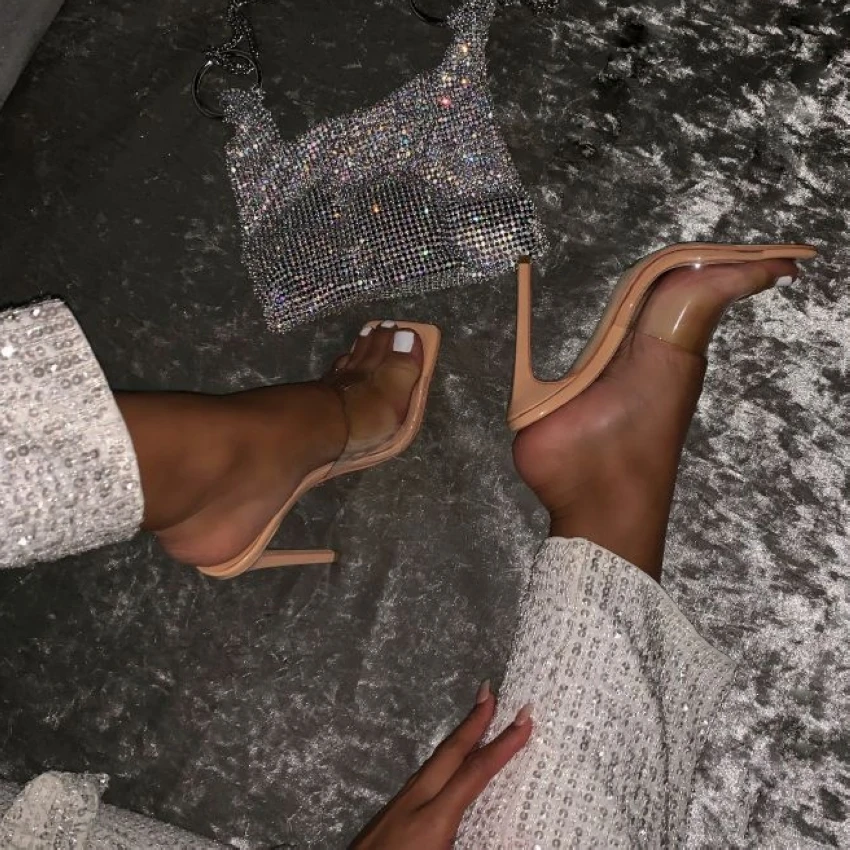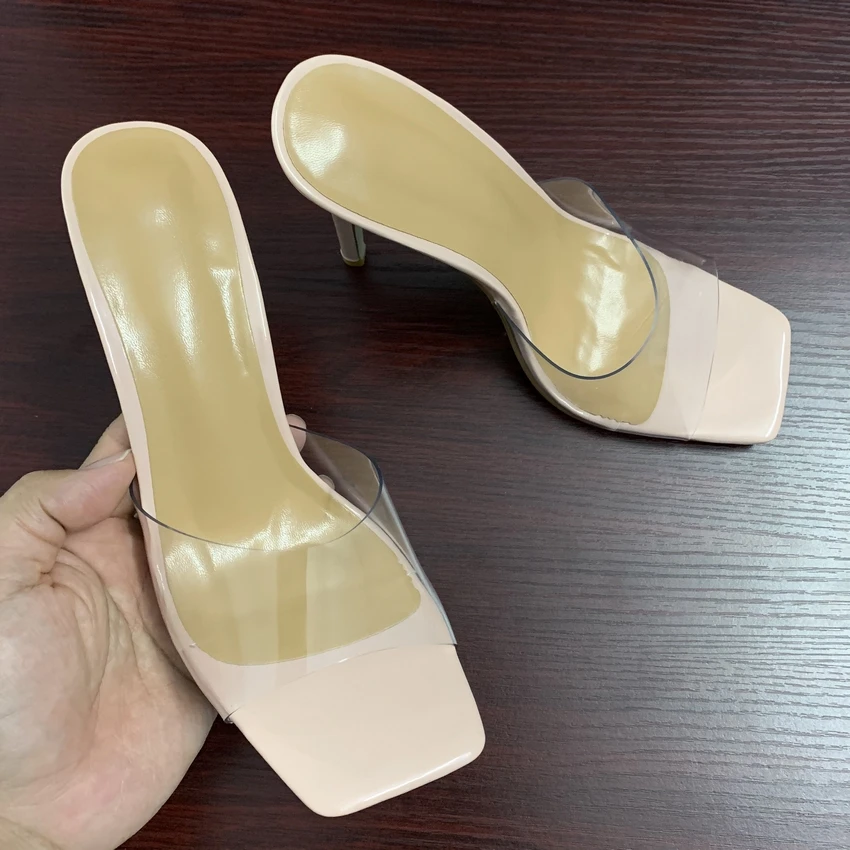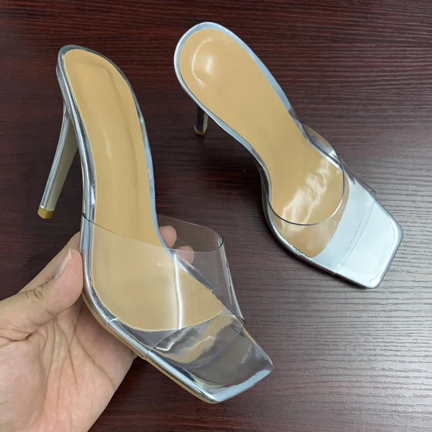 Мюли женские прозрачные из ПВХ, босоножки на высокой шпильке с квадратным носком, летние туфли, модель 2020