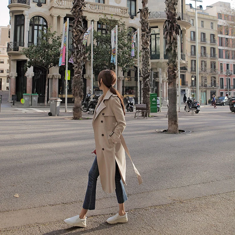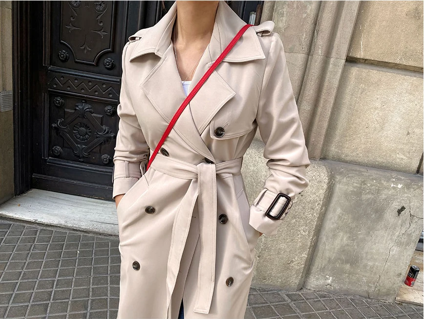 Женский Длинный плащ, черный, красный, хаки, женский двубортный пиджак