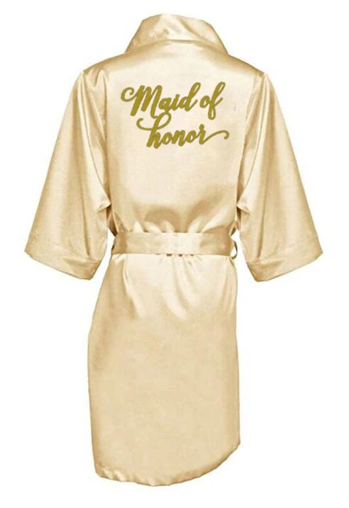 Женский Атласный халат для матери жениха, Атласный халат цвета шампанского золотого цвета с золотым накидкой для свадебной вечеринки