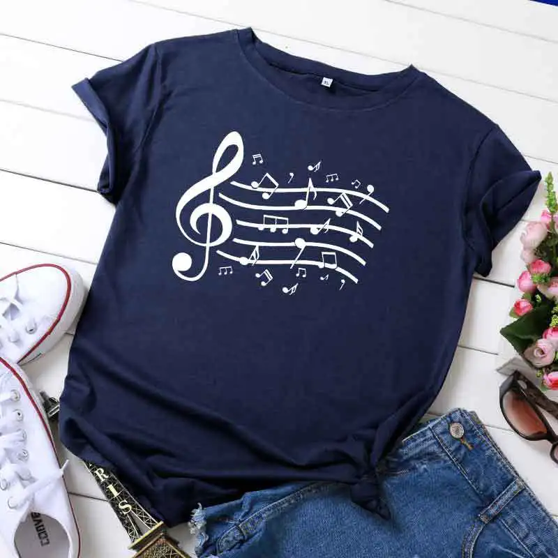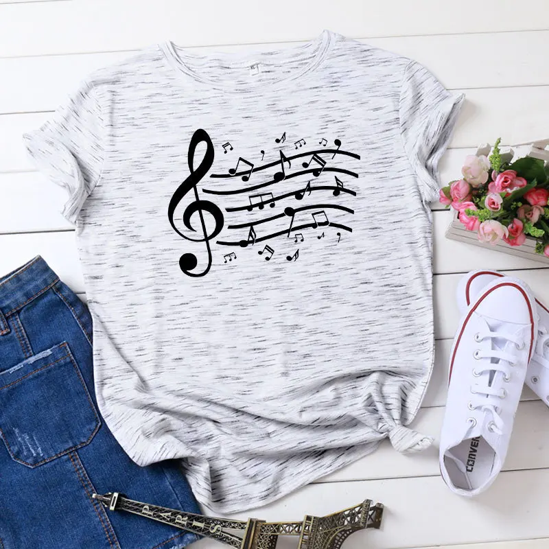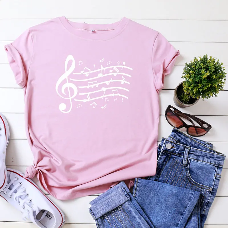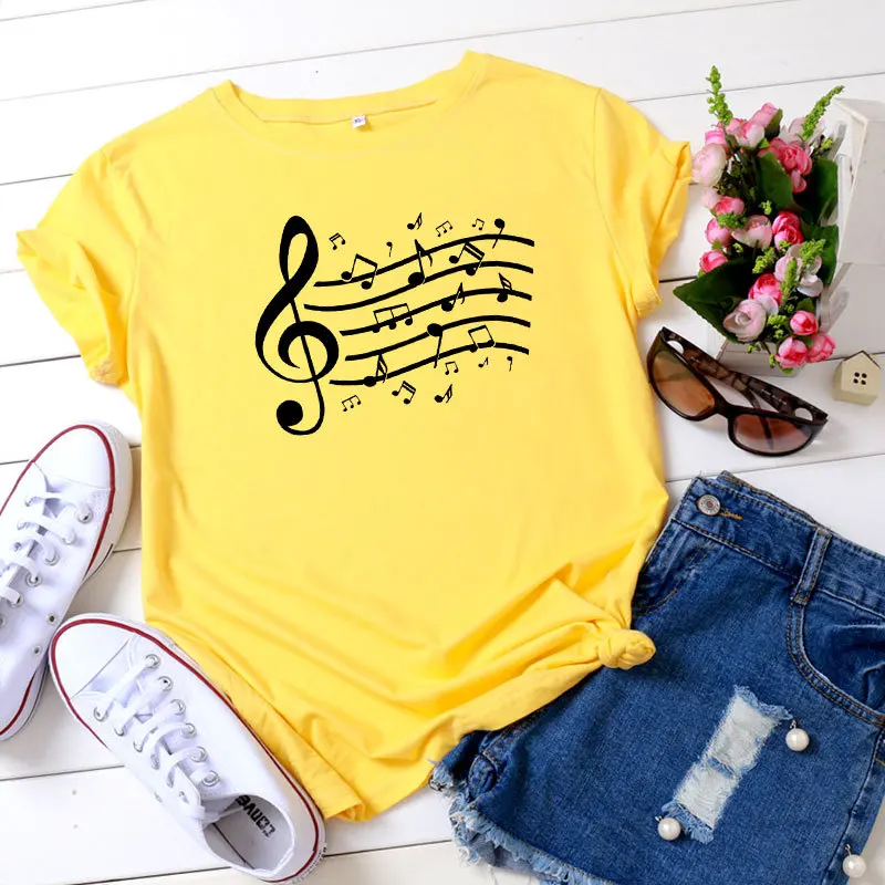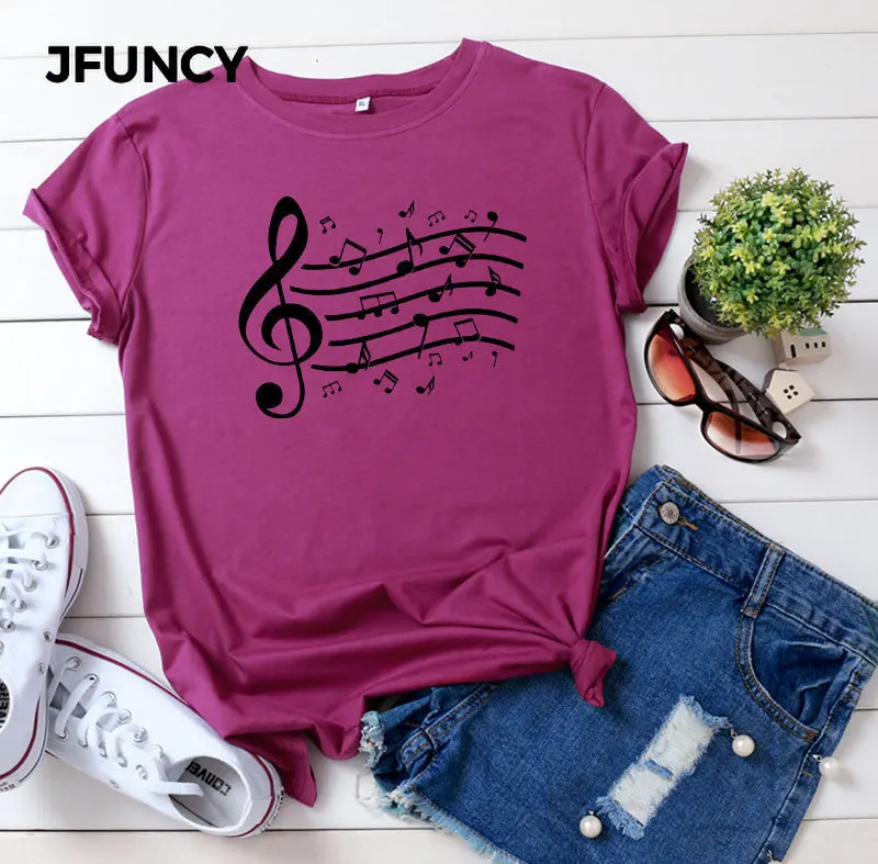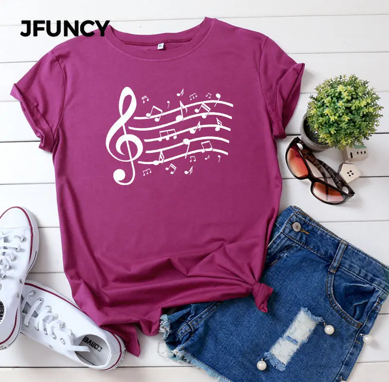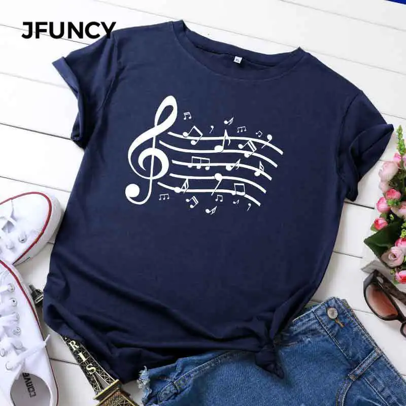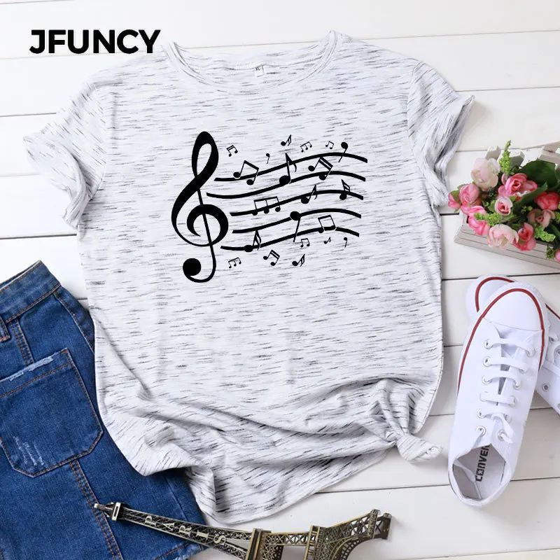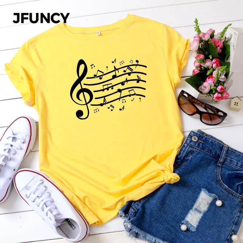 Женская хлопковая Футболка JFUNCY размера плюс с принтом музыкальных нот, женские летние топы, женские футболки Harajuku, корейские рубашки