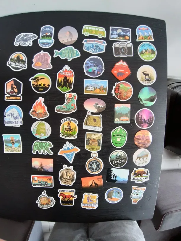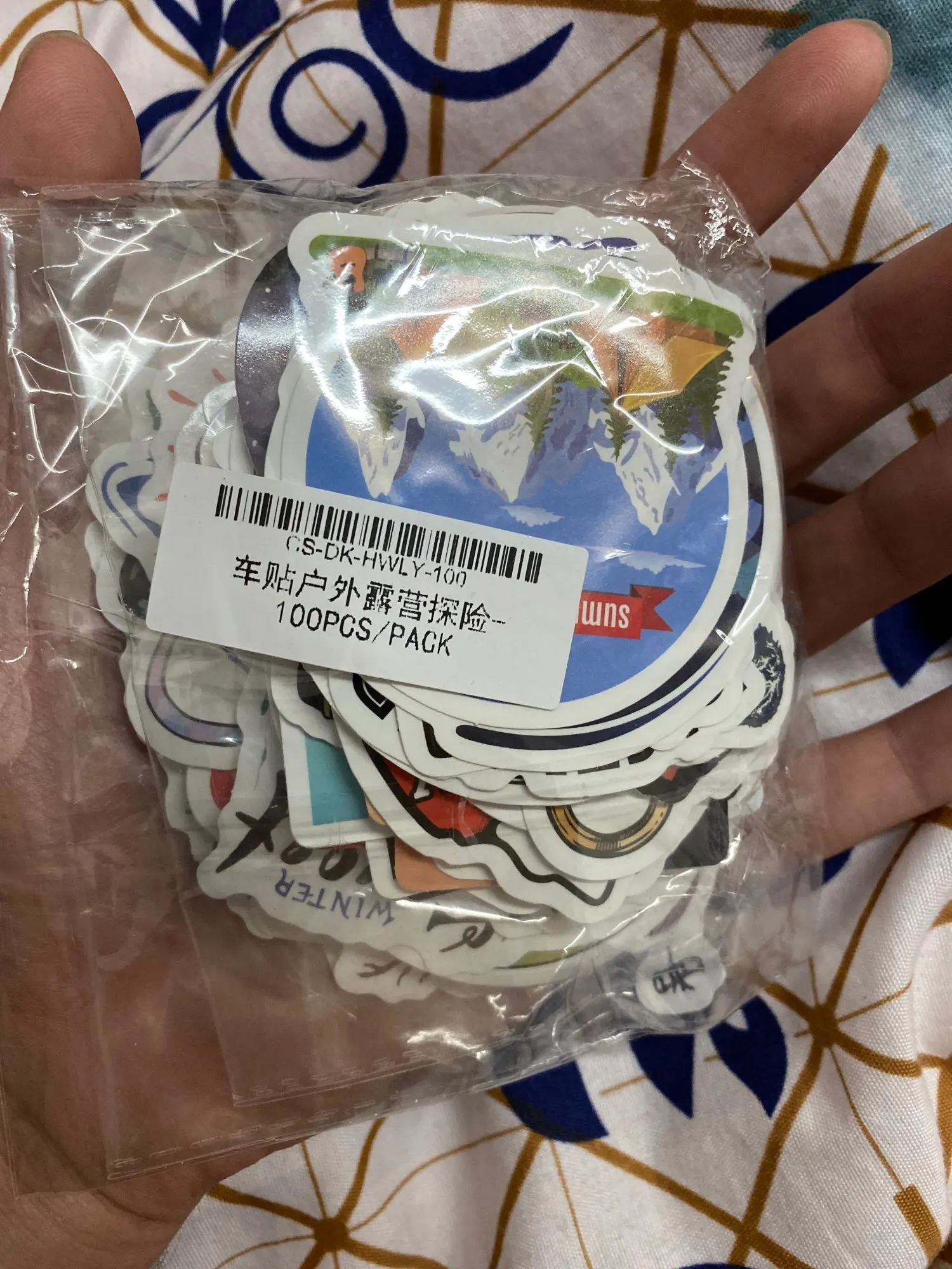 Посылка включает:100 шт наружные туристические наклейки. Не повторяется.