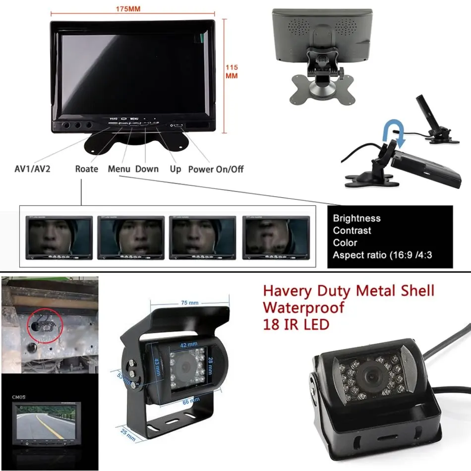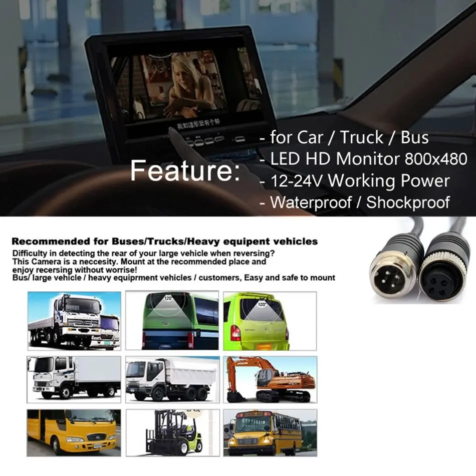 Автомобильный автобус, грузовик, 7-дюймовый HD монитор, парковочный комплект, 4-контактный разъем, ночное видение, камера заднего вида