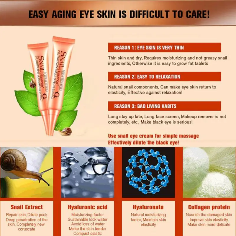 Увлажняющая и укрепляющая антивозрастная Сыворотка для кожи вокруг глаз, от Тёмных кругов и мешков под глазами, 30 г, крем для глаз с улиточной слизью, TSLM1