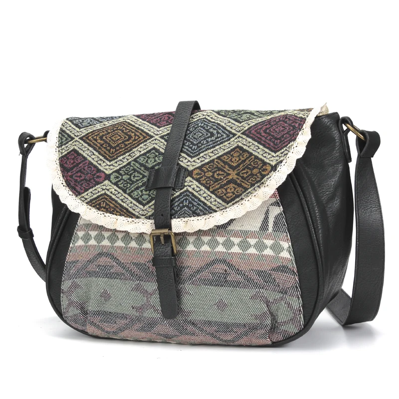 Винтажная женская сумка на плечо, кружевная сумочка-тоут через плечо с цветочным узором в богемном стиле, Женский дизайнерский мессенджер