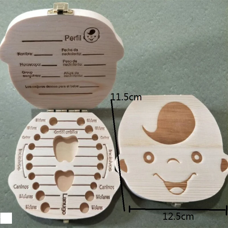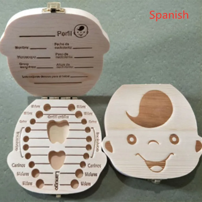 Деревянная детская коробка для выпадающих зубов с испанскиманглийск...
