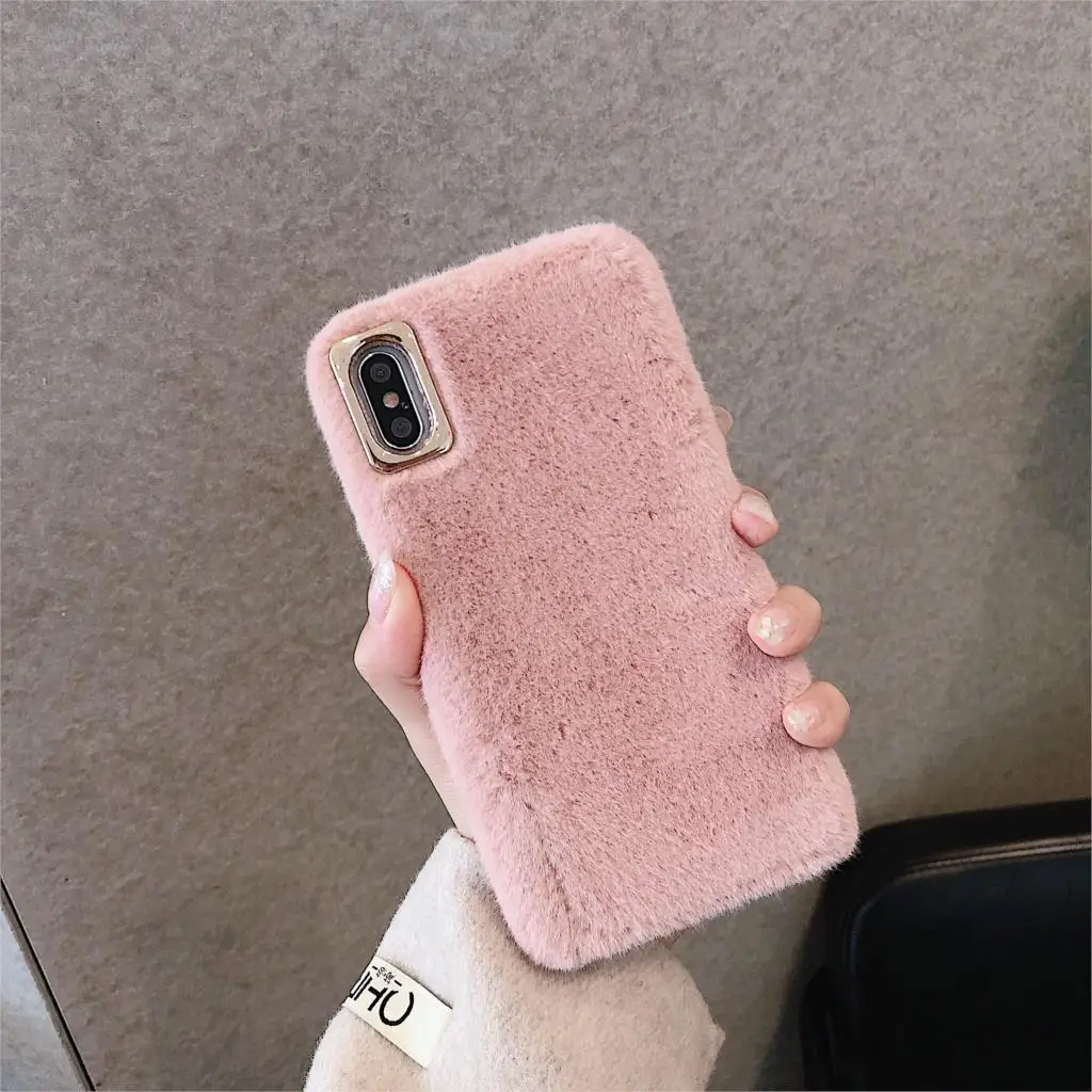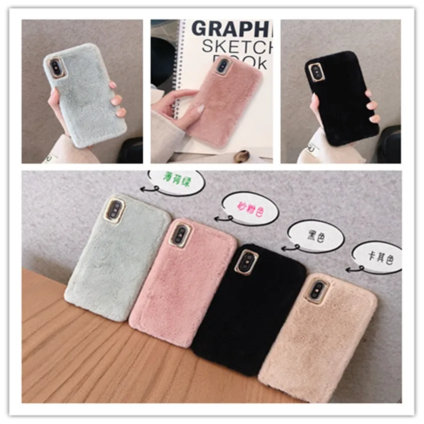 Простой Меховой чехол для iphone 7 8 Plus X XS Max XR iphone 5,8 6,...