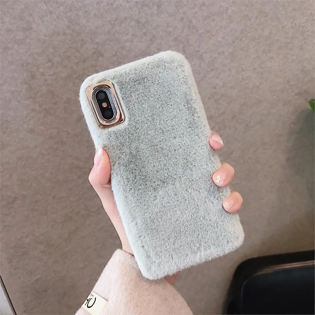 Простой Меховой чехол для iphone 7 8 Plus X XS Max XR iphone 5,8 6,...