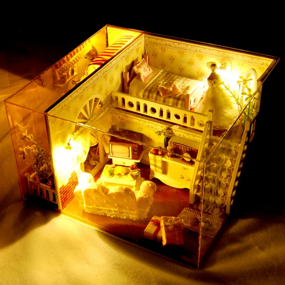 Кукольный дом С Пылезащитным чехлом, игрушки для детей, подарки для дома, Миниатюрная игрушка-пазл, модель, деревянные маски, подарки на день рождения