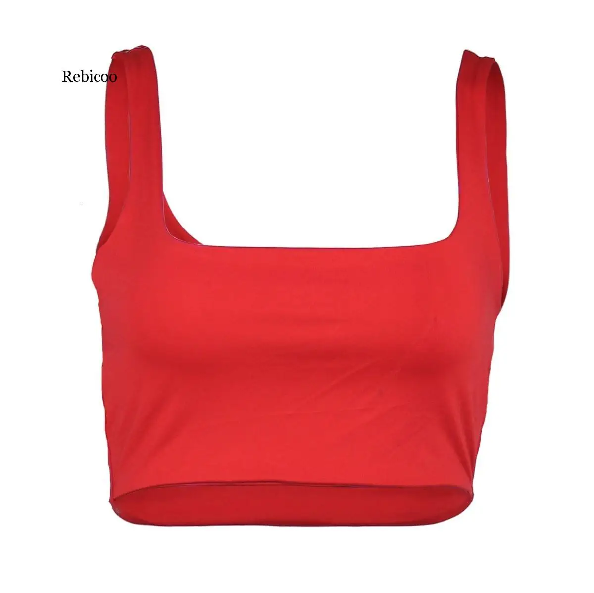 Женский сексуальный укороченный топ без рукавов, однотонный базовый топ на бретелях, летняя Клубная облегающая короткая футболка