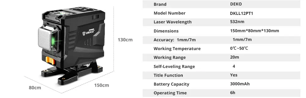 Лазерный уровень DEKO DKLL12PT1, горизонтальный и вертикальный самонивелирующийся 3d-лазер с 12-линейным зеленсветильник светом и пультом дистанционного управления, высокая точность