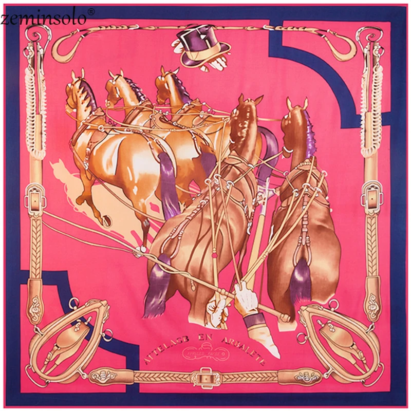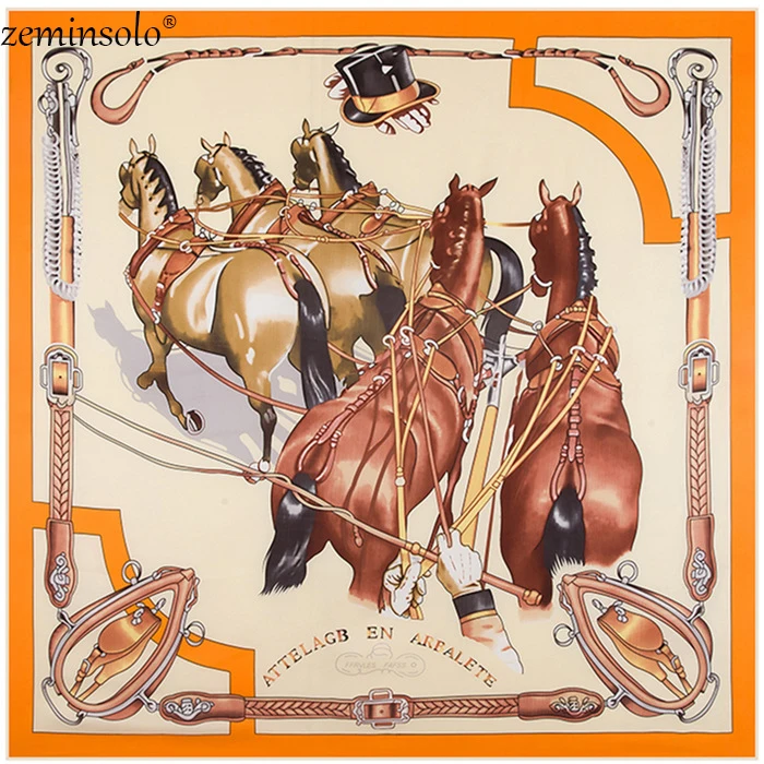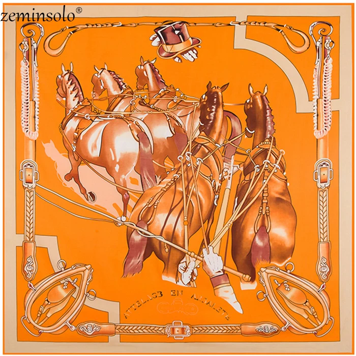 2020 саржевый шелковый шарф квадратный платок Бандана с принтом лошадей зимние шарфы для женщин шали люксовый бренд шелковые шарфы палантины