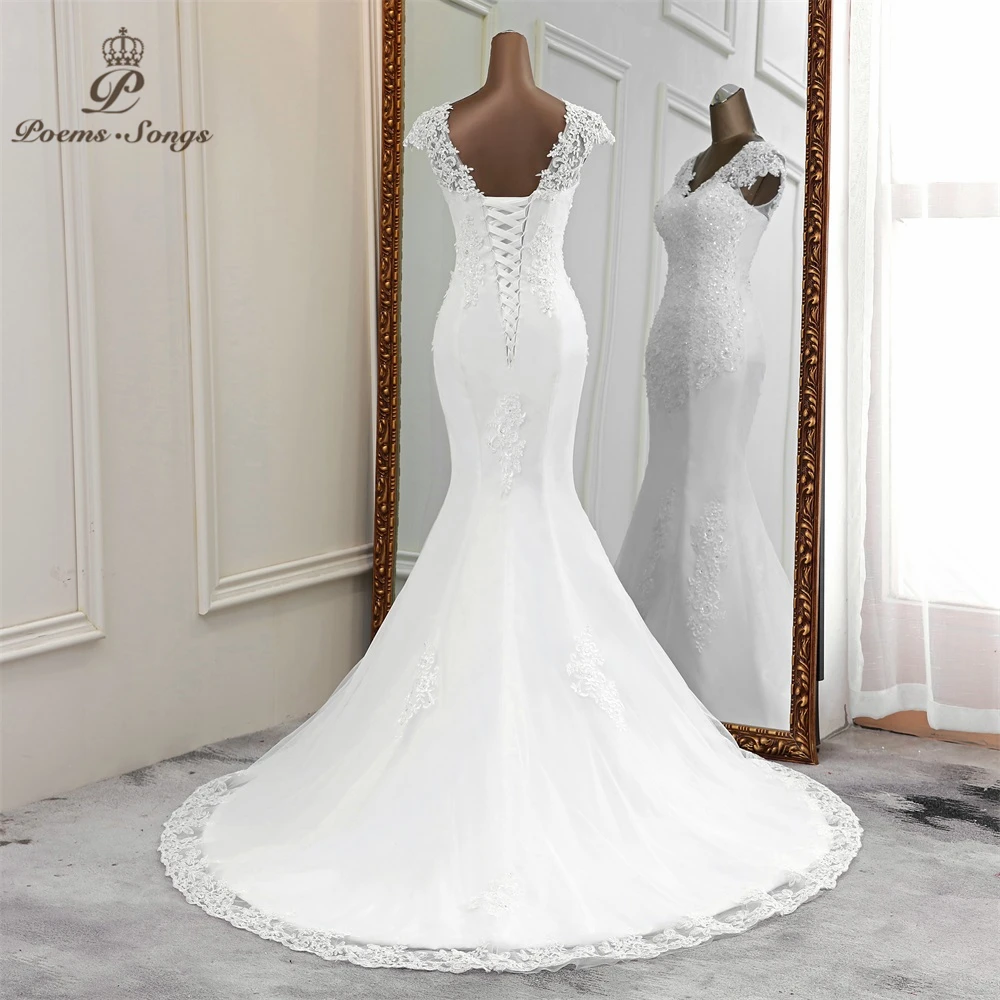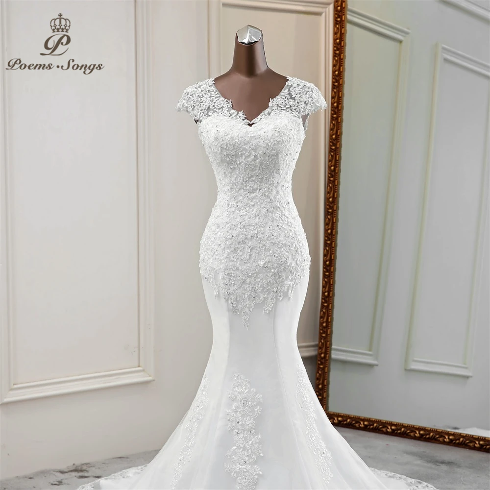Элегантное Новое свадебное платье; свадебное платье с v-образным вырезом; красивое платье невесты с аппликацией в виде русалки