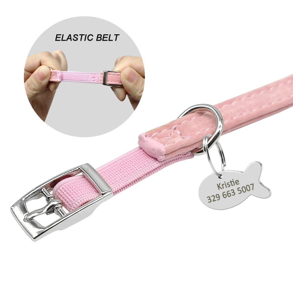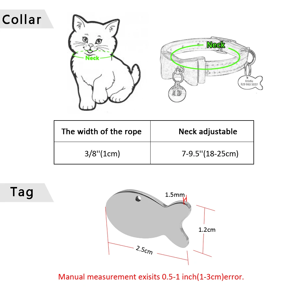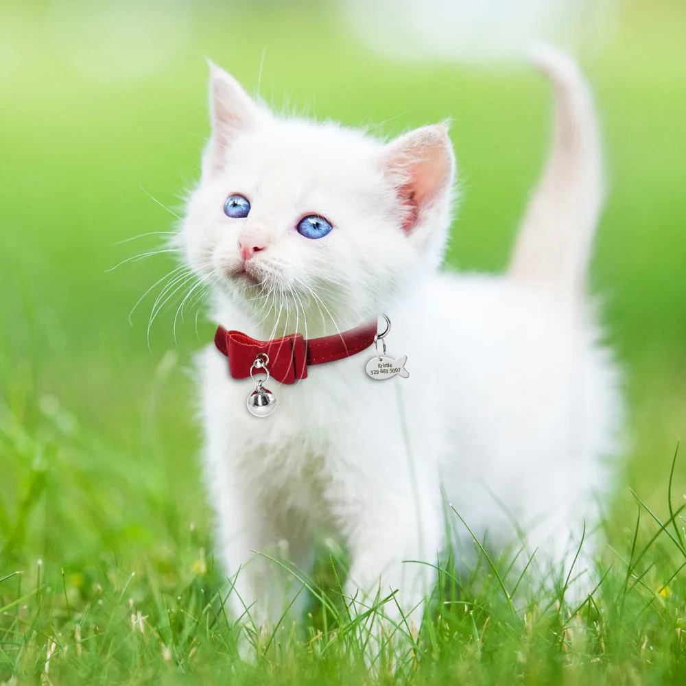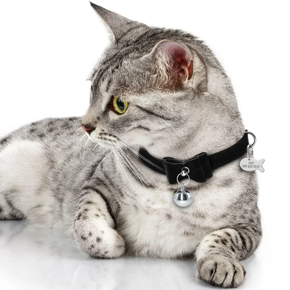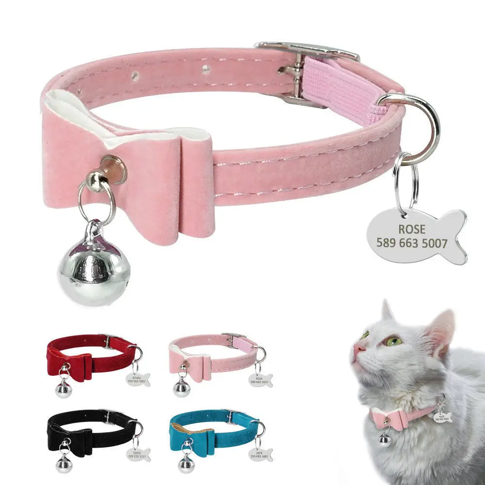 Ошейник для кошек с колокольчиком, персонализированный ошейник для щенка, идентификационный ярлык, ошейник с бантом, Заказные ошейники для собак и кошек, розовая, синяя, Бесплатная гравировка