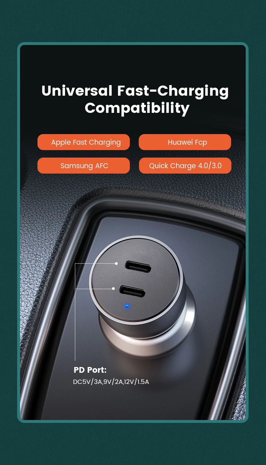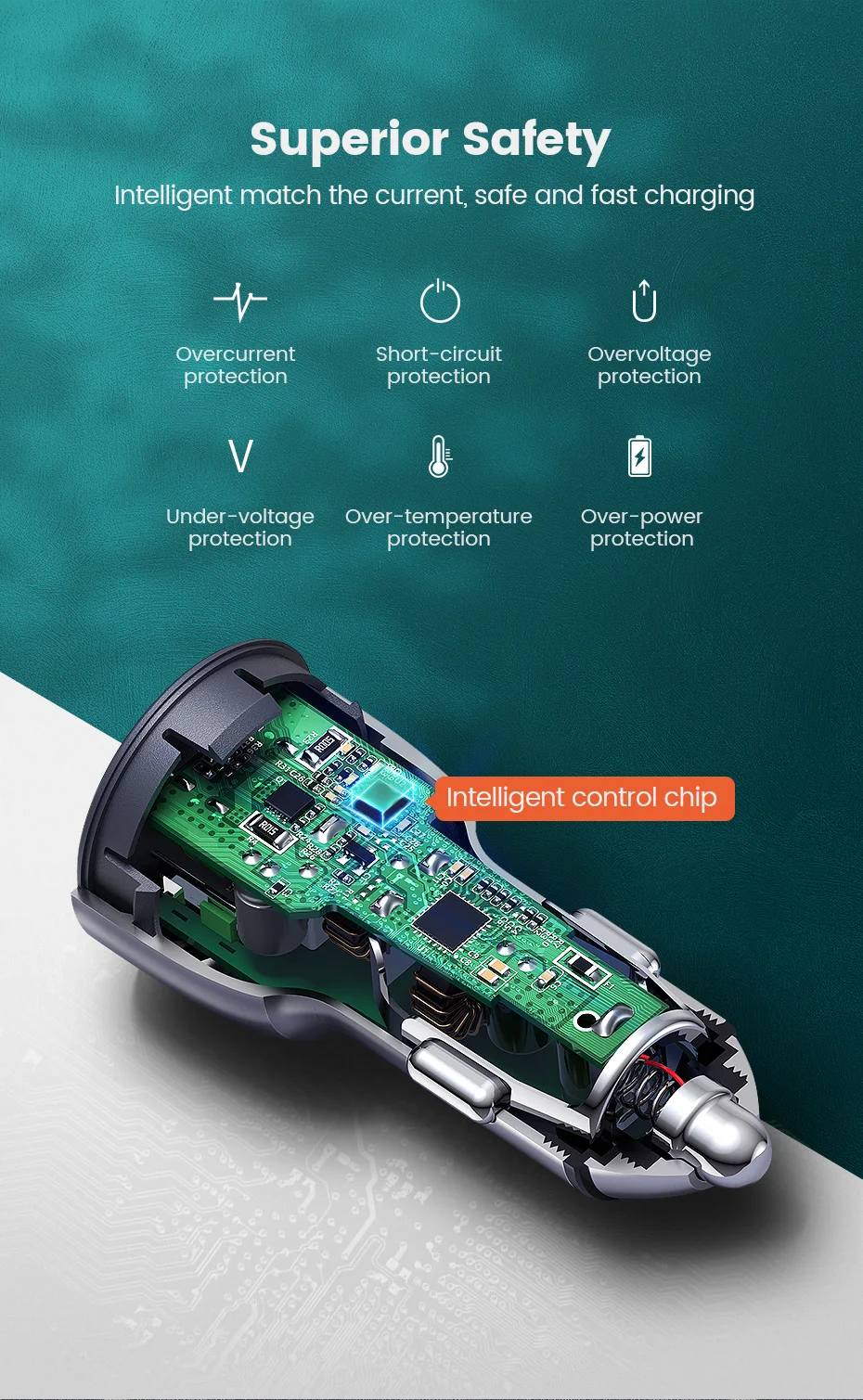 Очень однотонное автомобильное зарядное устройство. Внешний корпус-холодный металлик. Прочный корпус. Никаких проблем и продукт отлично работает в автомобиле. Индикатор синего света, возможно, немного тусклый, но это не главная проблема