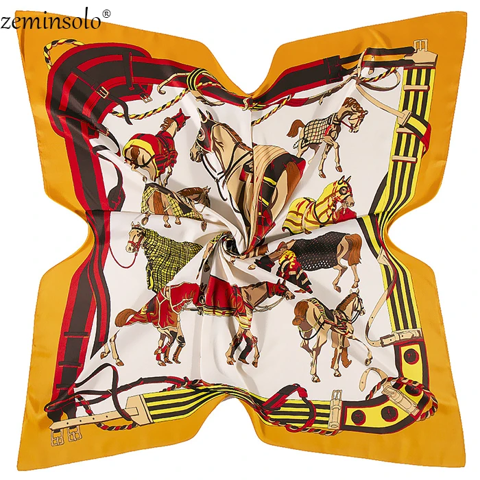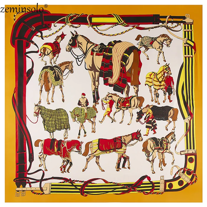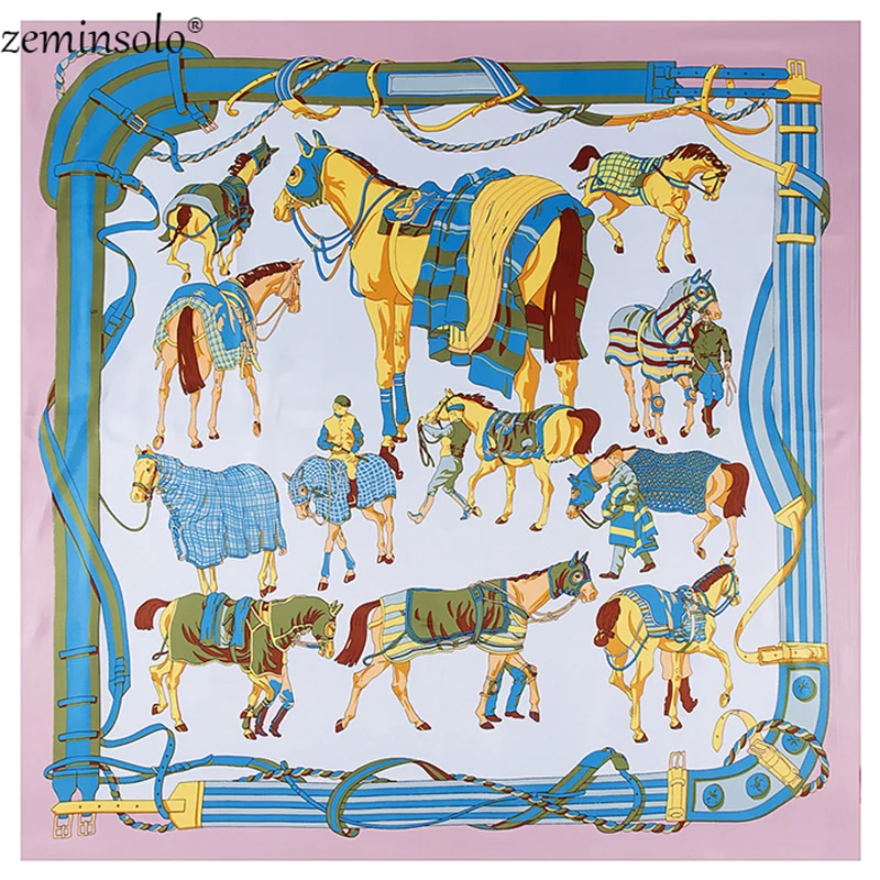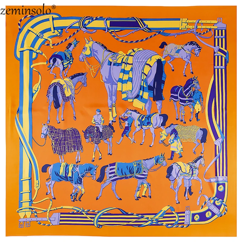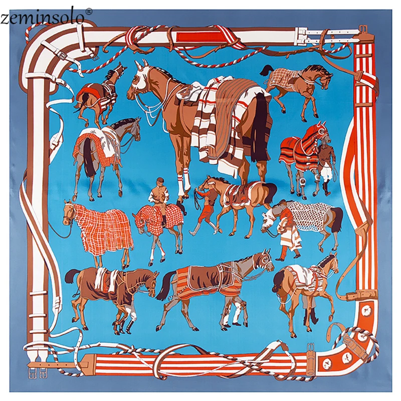 100% саржевая Роскошная брендовая шелковая бандана шарф для женщин 2020 Новинка модные большие квадратные шарфы повязка на голову шали с принтом лошадей хиджаб