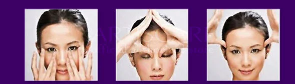 3. Используйте кольцевой палец для нажатия частей под бровями.