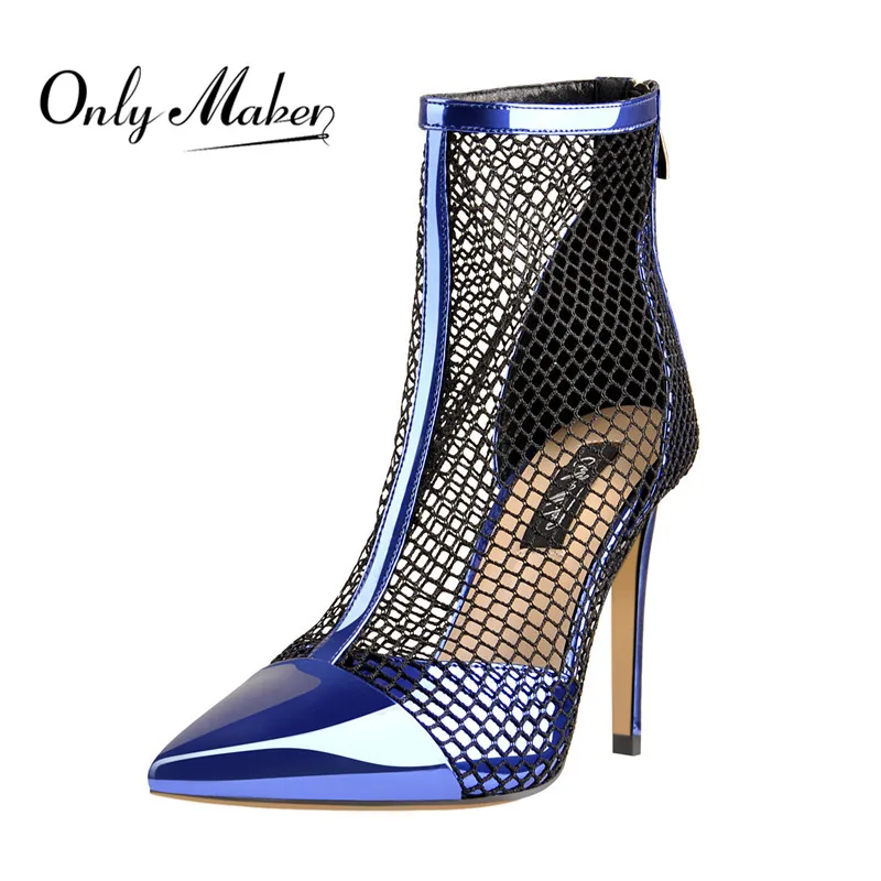 Женские ботильоны в сетку Onlymaker, босоножки на высоком каблуке 10 см, модные синие и красные ботинки, большие размеры