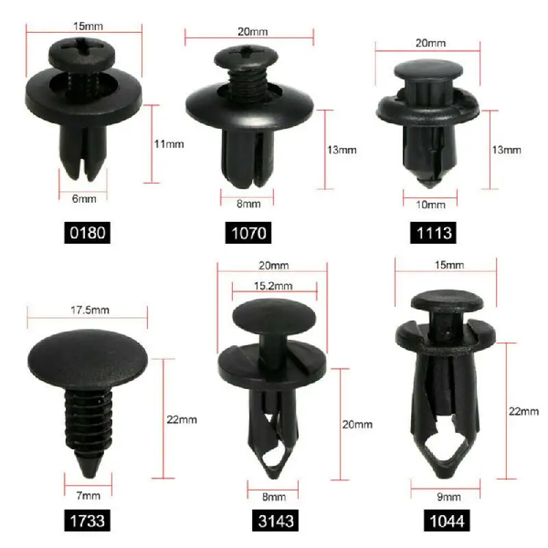 Зажим пластиковый для крепления бампера, 6 размеров, 190 шт.