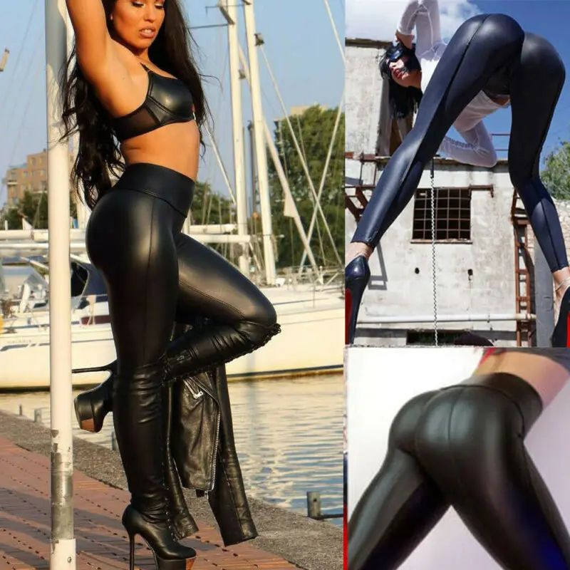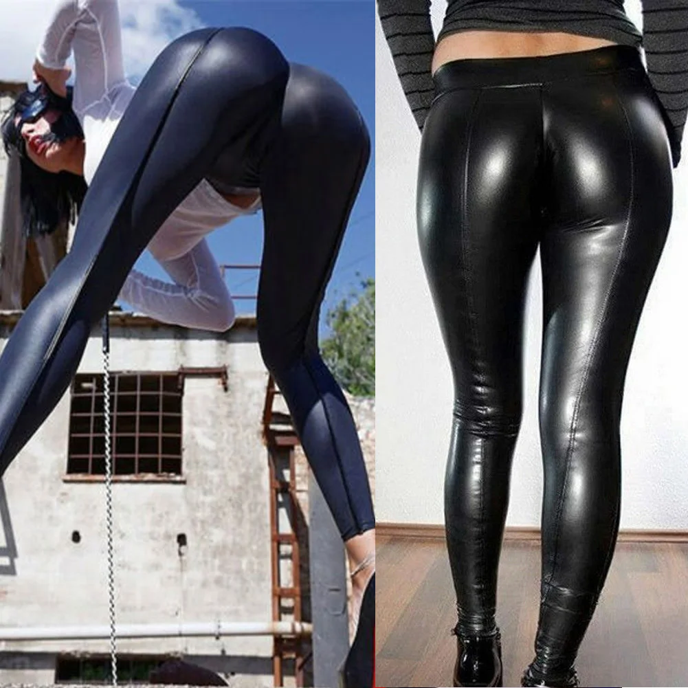 Женские эластичные брюки из ПУ кожи, модные сексуальные повседневные облегающие брюки-карандаш