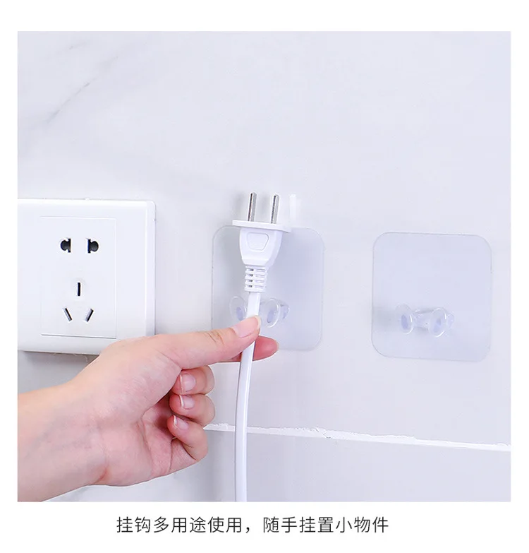 Крепкий крючок на клейкой основе, невидимый крючок для розетки, прозрачный настенный кронштейн для кухни, бытового хранения