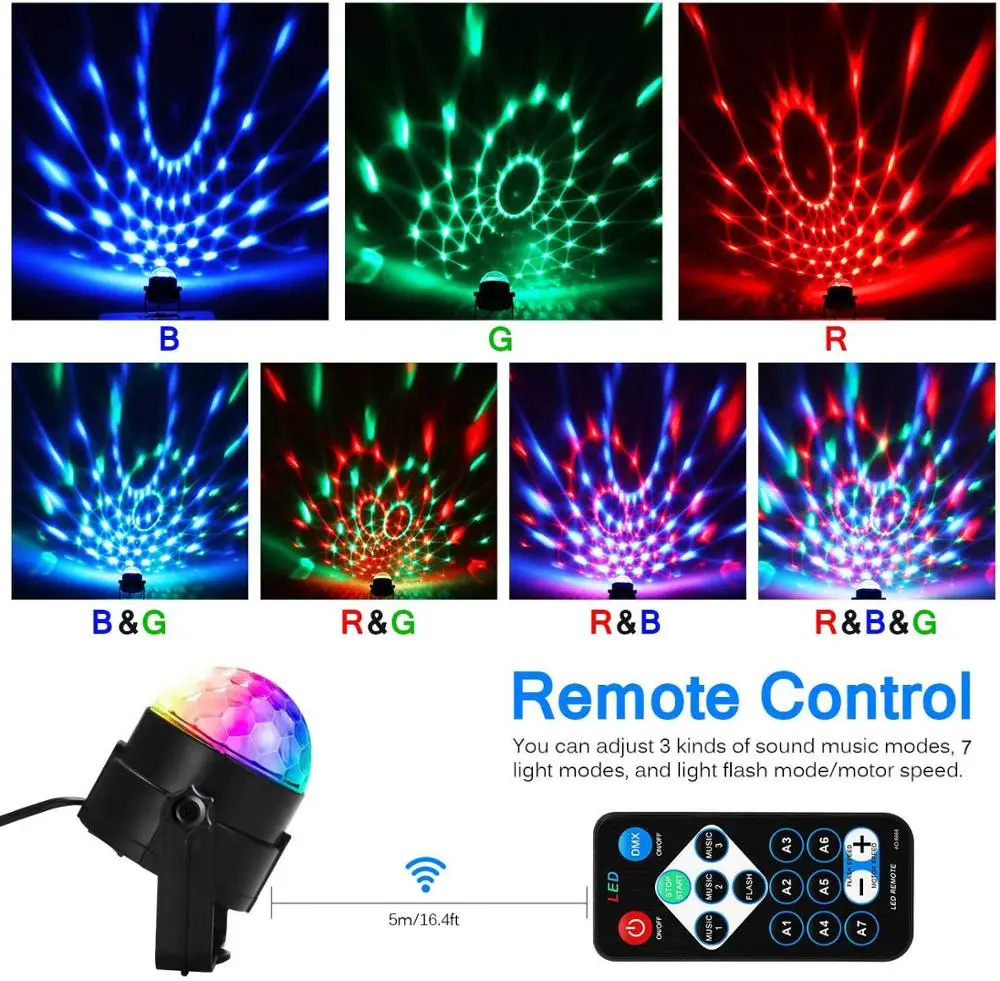 Вращающийся со звуковым активацией диско-шар DJ вечерние светильник s 3 Вт RGB светодиодный сценический светильник s стробоскоп светильник для праздника, дня рождения, Рождества, свадьбы