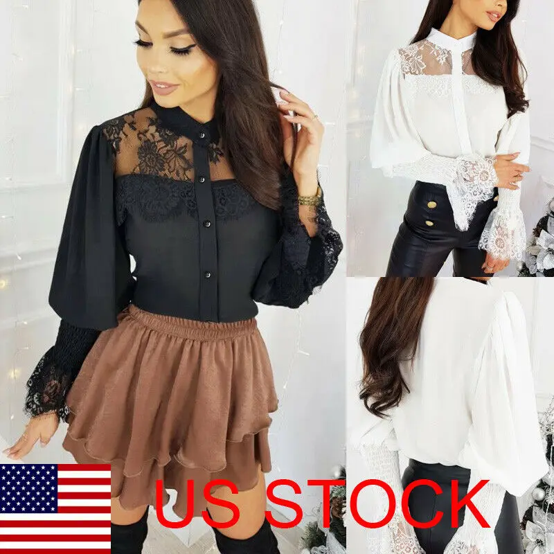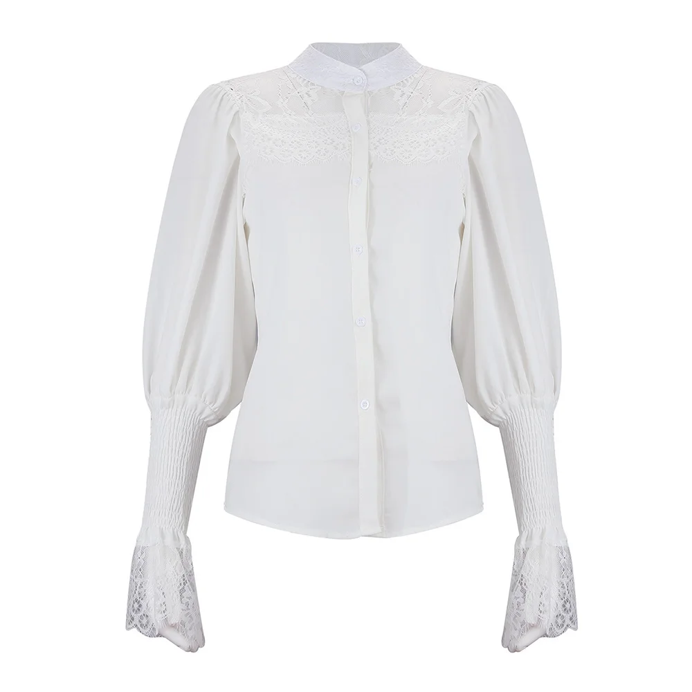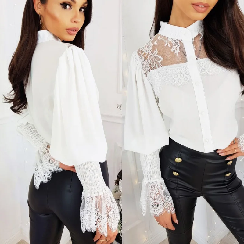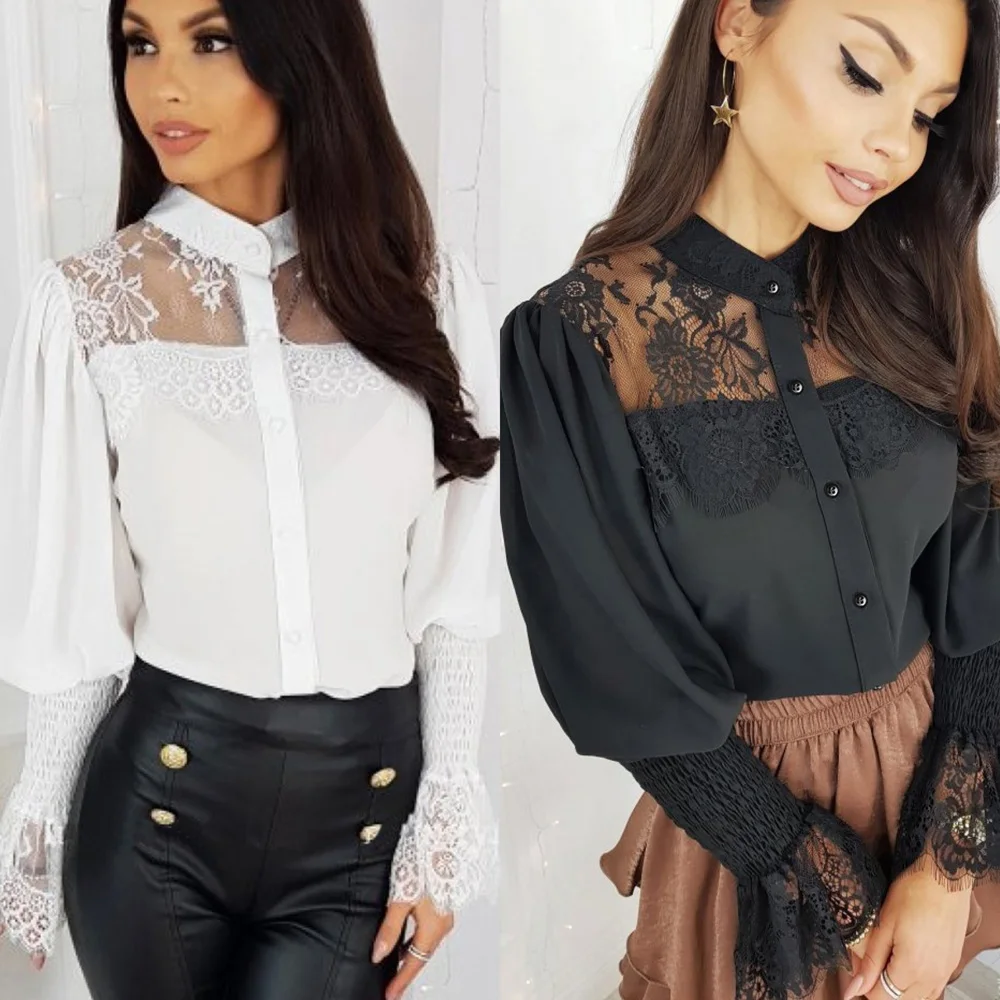 Женский кружевной джемпер на пуговицах, Повседневная Весенняя блузка из сетчатой ткани с вышивкой, 2020