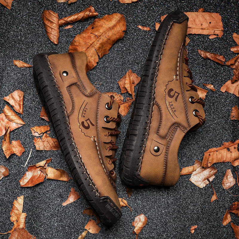 Мужская повседневная обувь, кожаные модные мужские кроссовки, дышащая мужская обувь ручной работы, легкие мужские мокасины, размера плюс 38-48