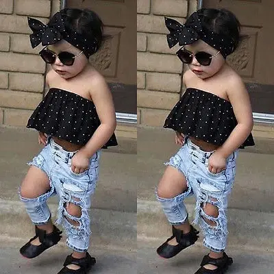 Комплекты одежды для маленьких девочек джинсовые штаны в горошек с ...