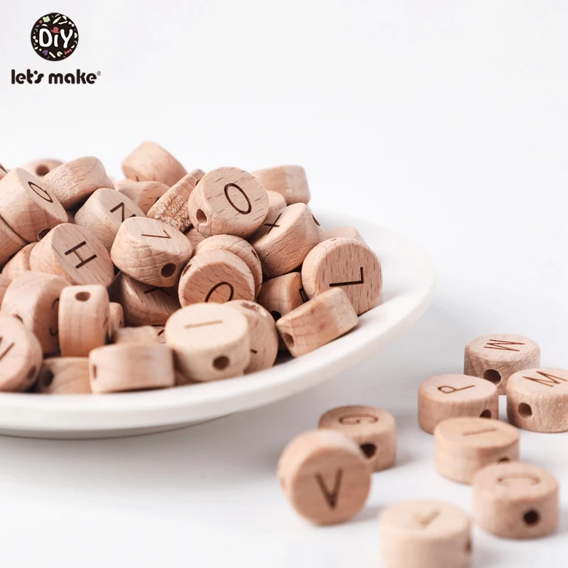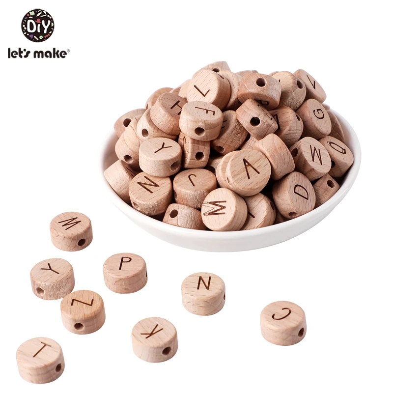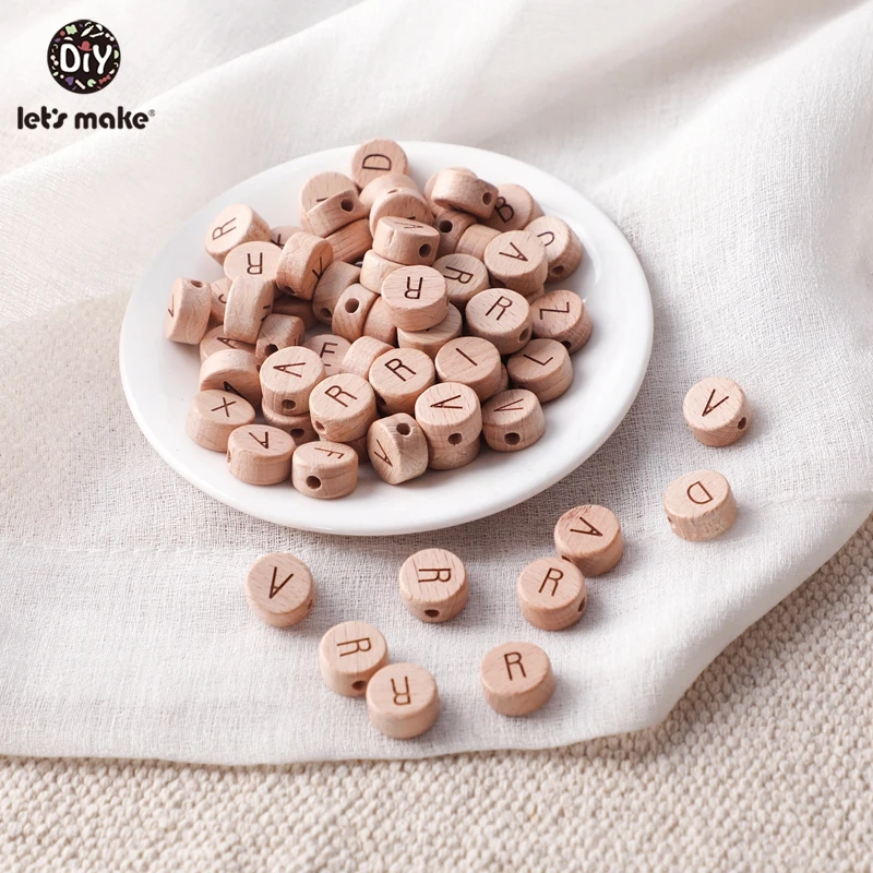 Зажим для соски Let's Make, круглые деревянные гравированные бусины...