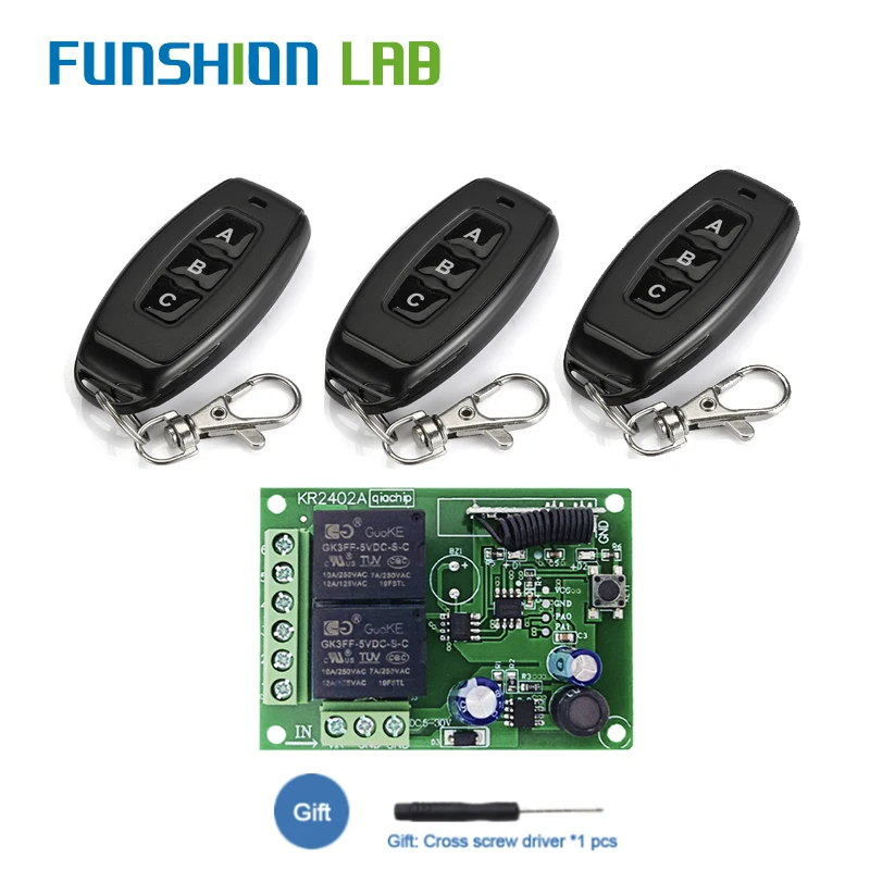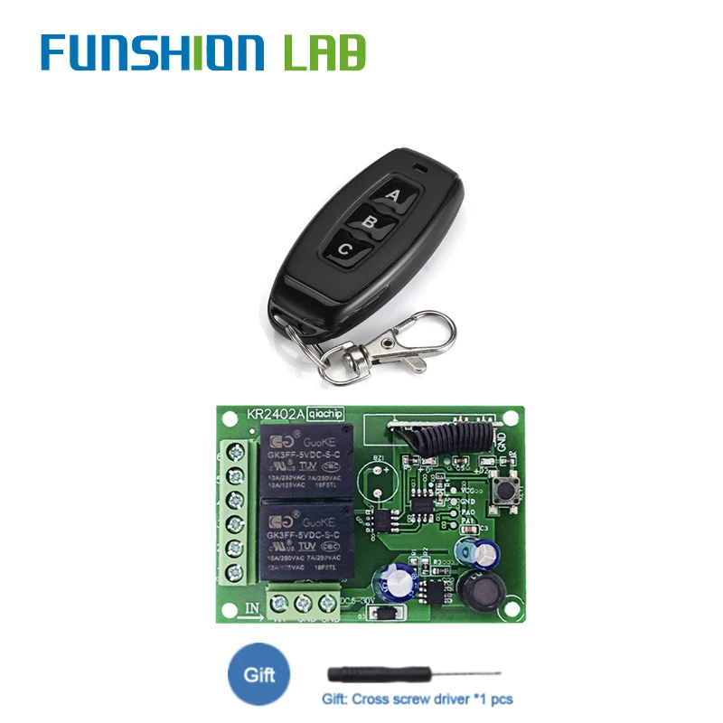 Универсальный пульт дистанционного управления FUNSHION RF, 433 МГц, 6 в, 12 В, 24 В, 2 канала