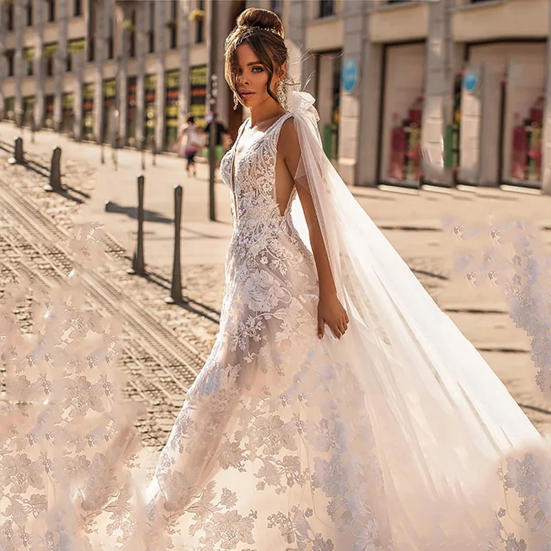 Свадебное платье-Русалка Verngo, кружевное свадебное платье с аппли...