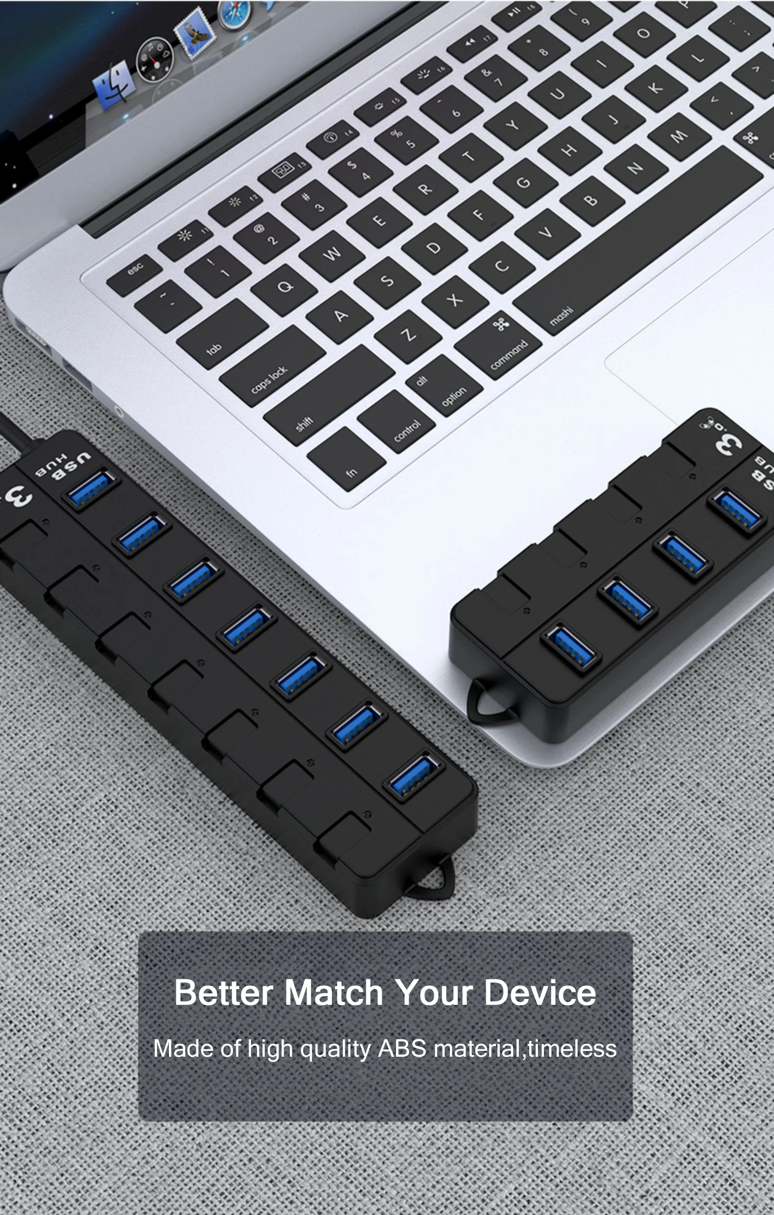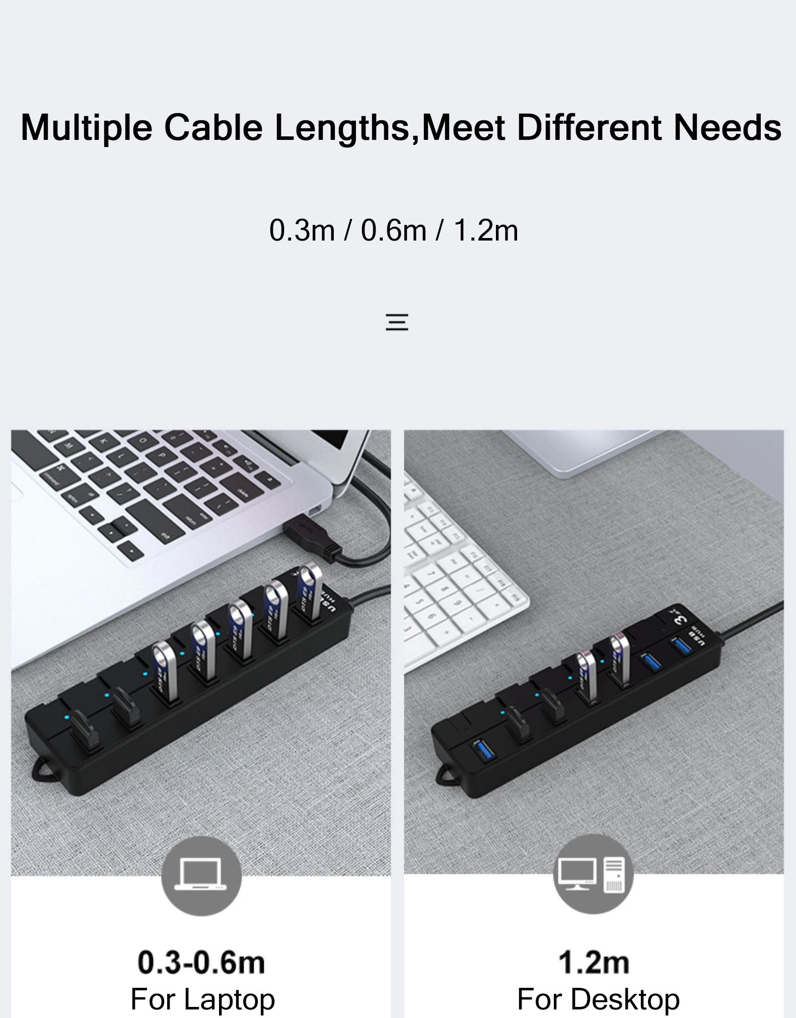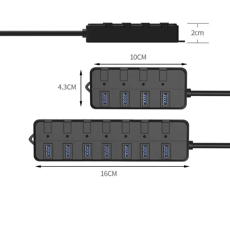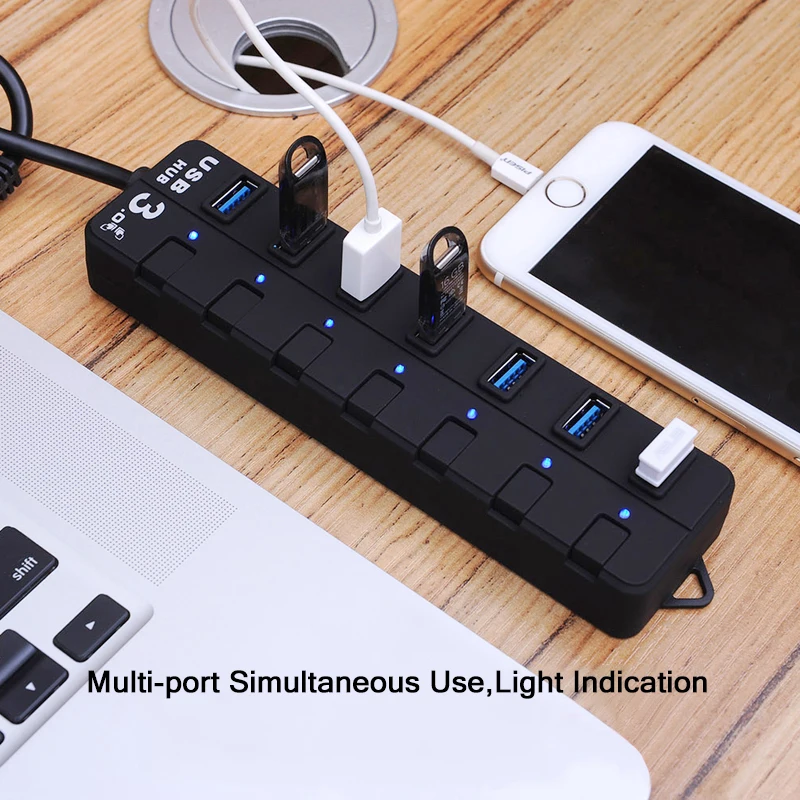 Usb-концентратор USB 3,0 с 4-портовым 7-портовым разъемом 30 см60 см120 см с блоком питания 5В 2A, usb-разветвитель для ноутбука, настольного компьютера, быстрая передача