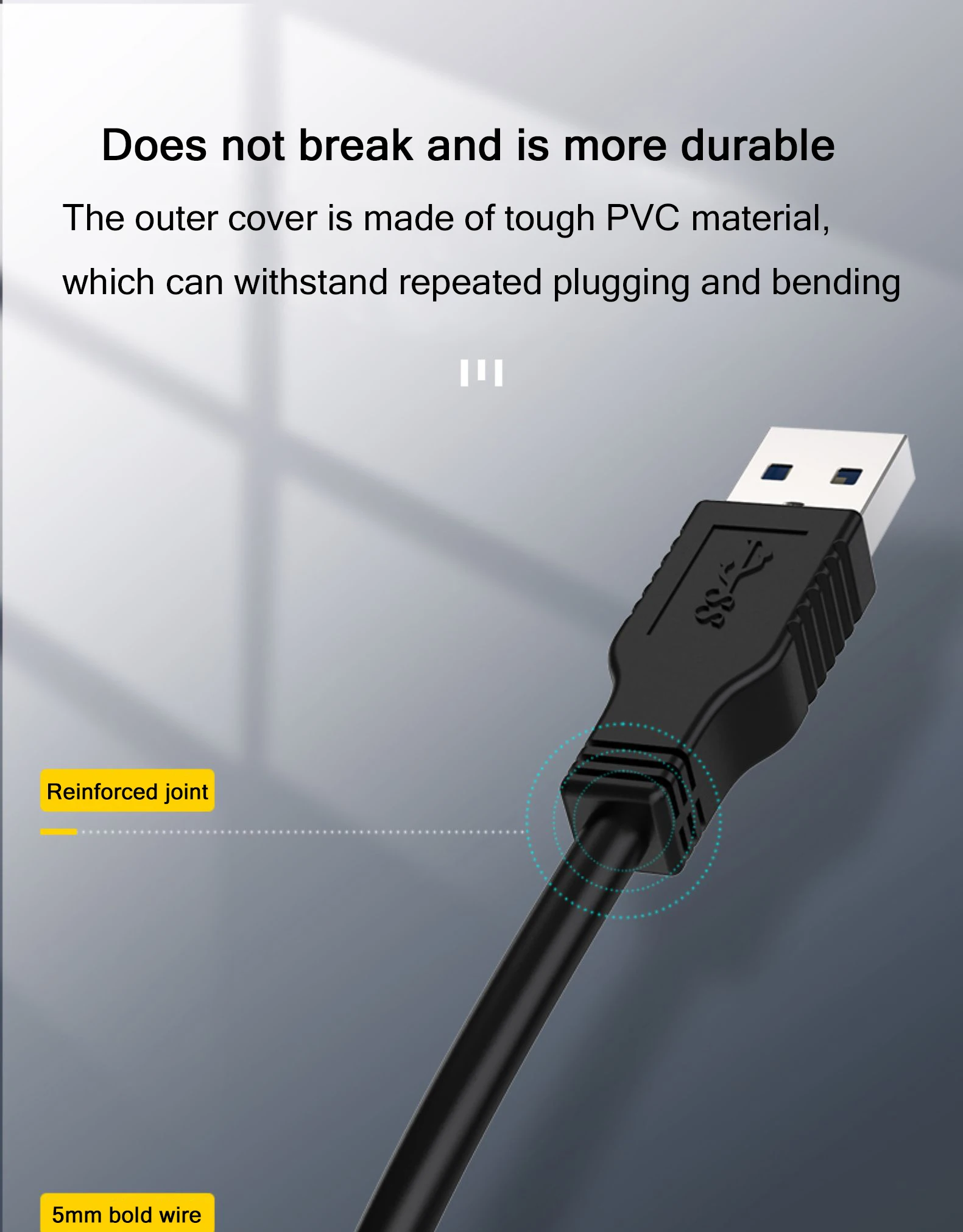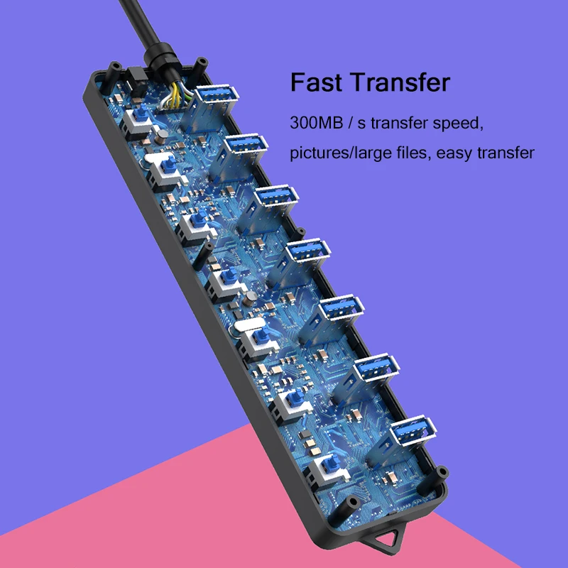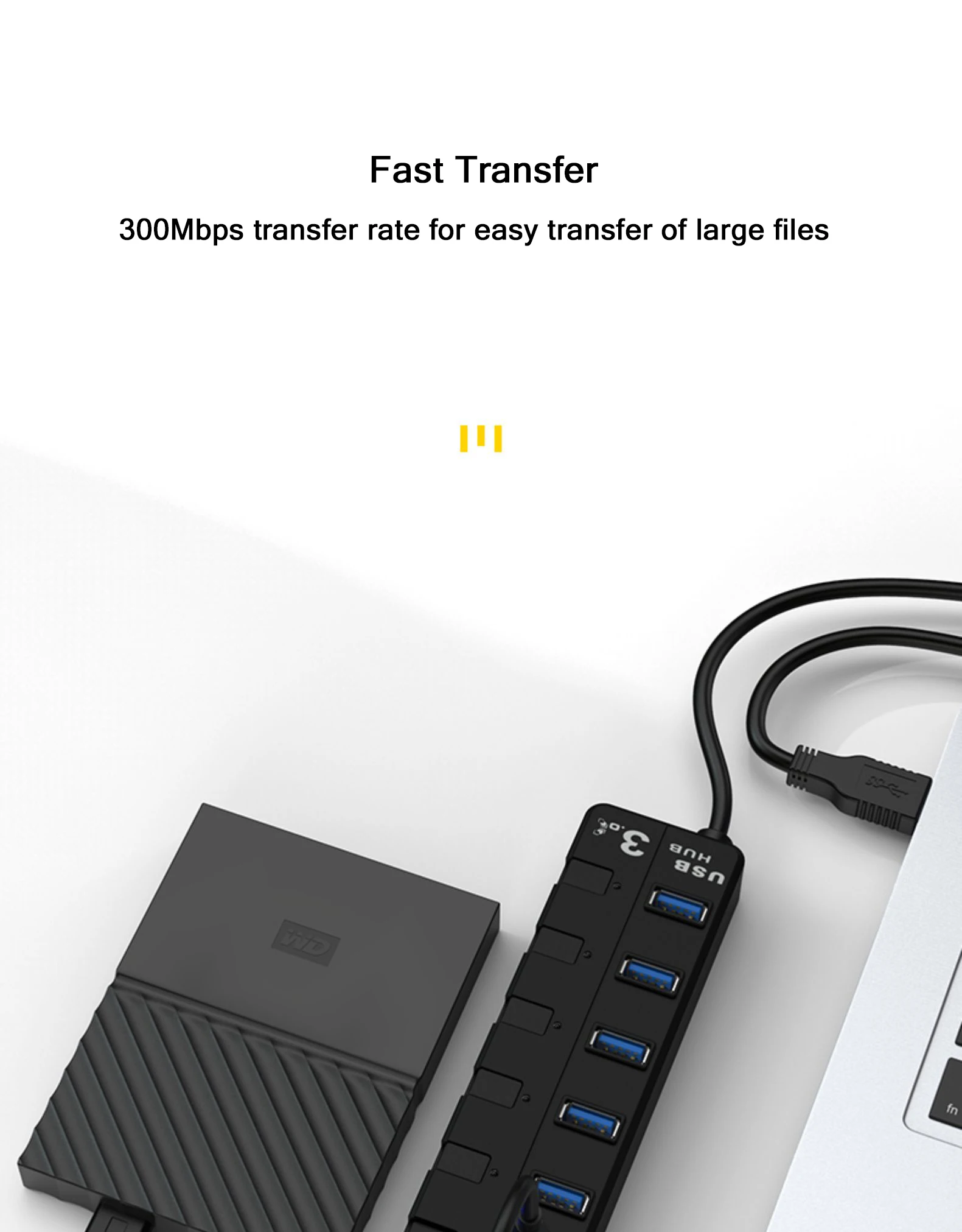 Usb-концентратор USB 3,0 с 4-портовым 7-портовым разъемом 30 см60 см120 см с блоком питания 5В 2A, usb-разветвитель для ноутбука, настольного компьютера, быстрая передача