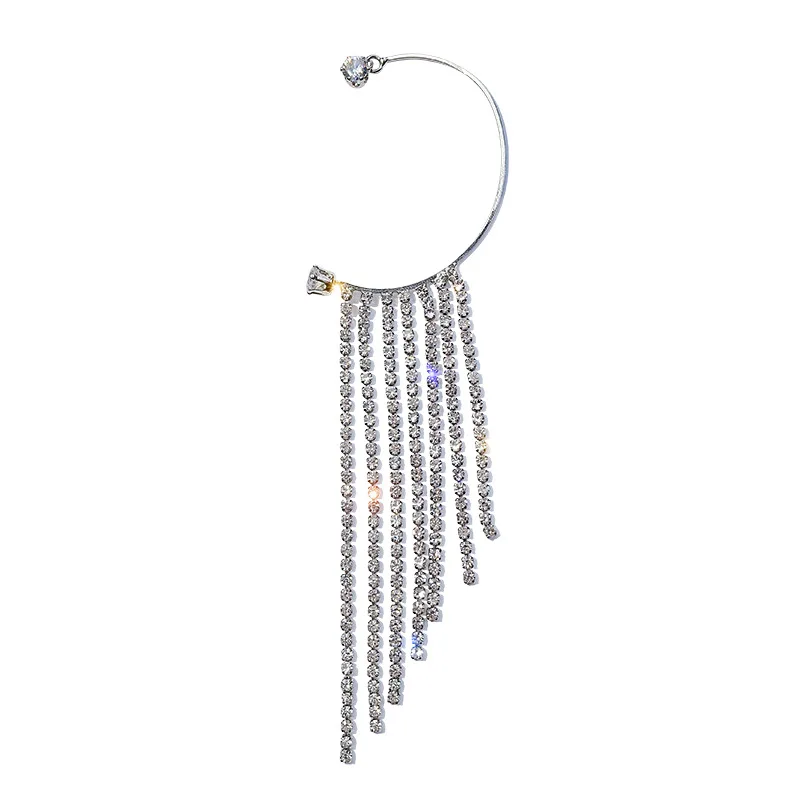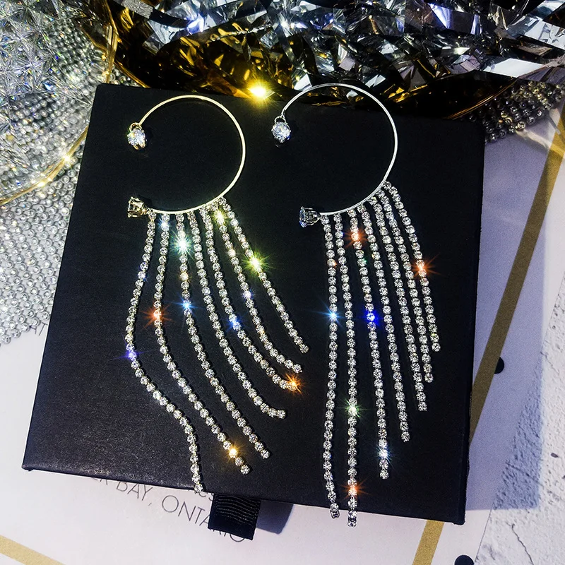 Корейская мода темпераментная холодная ветровая сетка Красная длинная кристаллическая кисточка Женская дикая Одиночная клипса для ушей