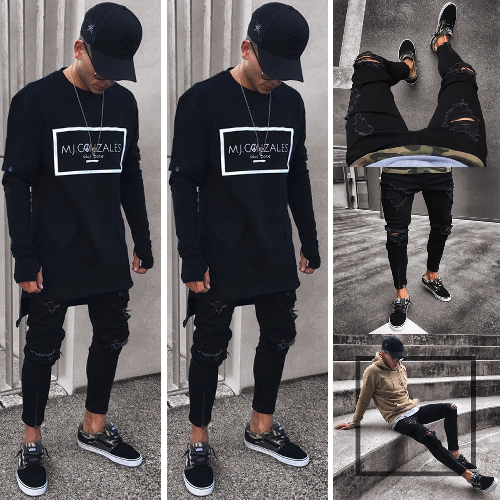 Мужские облегающие джинсы s Cool, черные рваные джинсы стрейч с дырками, облегающие штаны в стиле хоп, для мужчин, 2020
