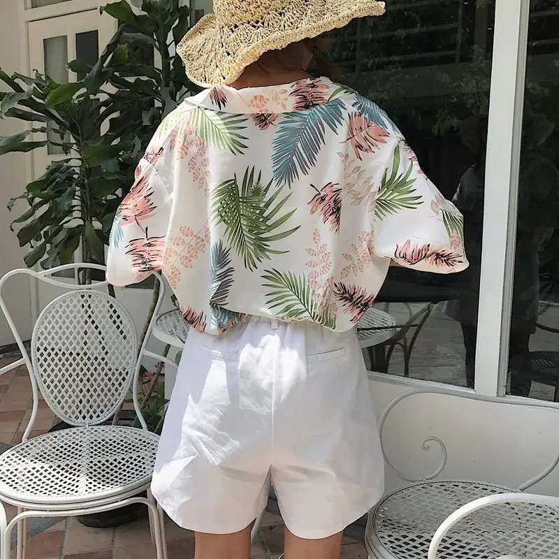 Женская летняя обувь для отдыха Повседневная рубашка в гавайском ст...