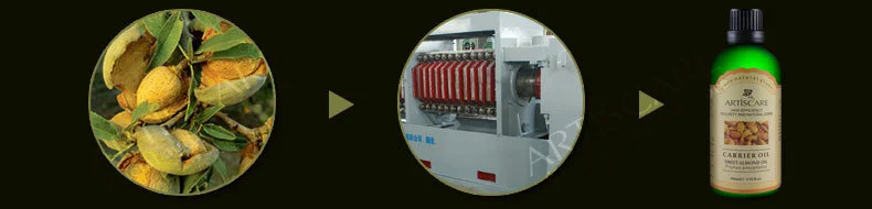 Artiscare использует традиционный метод для производства эфирного масла. История может восходить к 5 тысячам лет. В условиях низкой температуры люди используют интенсивное давление, чтобы выжать эссенции из сладкого миндального масла, чтобы гарантировать, что растительные эссенции не будут повреждены.