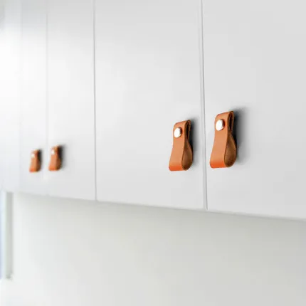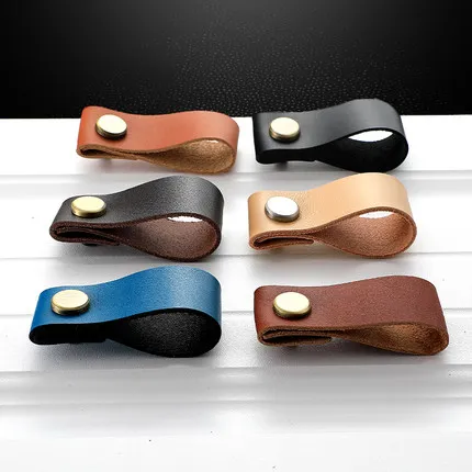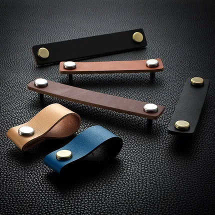 Ручной работы из кожи тянуть ручки Европа Стиль мягкие минималистский шкаф со стеклянными дверями ящик тумба кухонного шкафа мебельная фурнитура