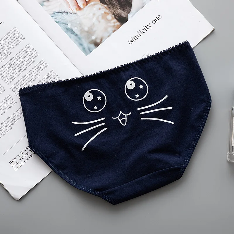 Трусики женские хлопковые бесшовные с принтом кошки, 5 шт.лот