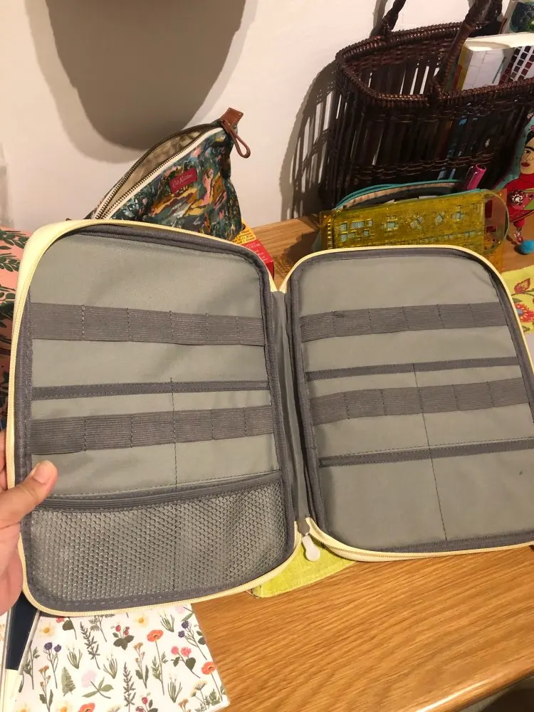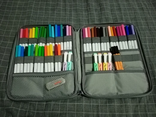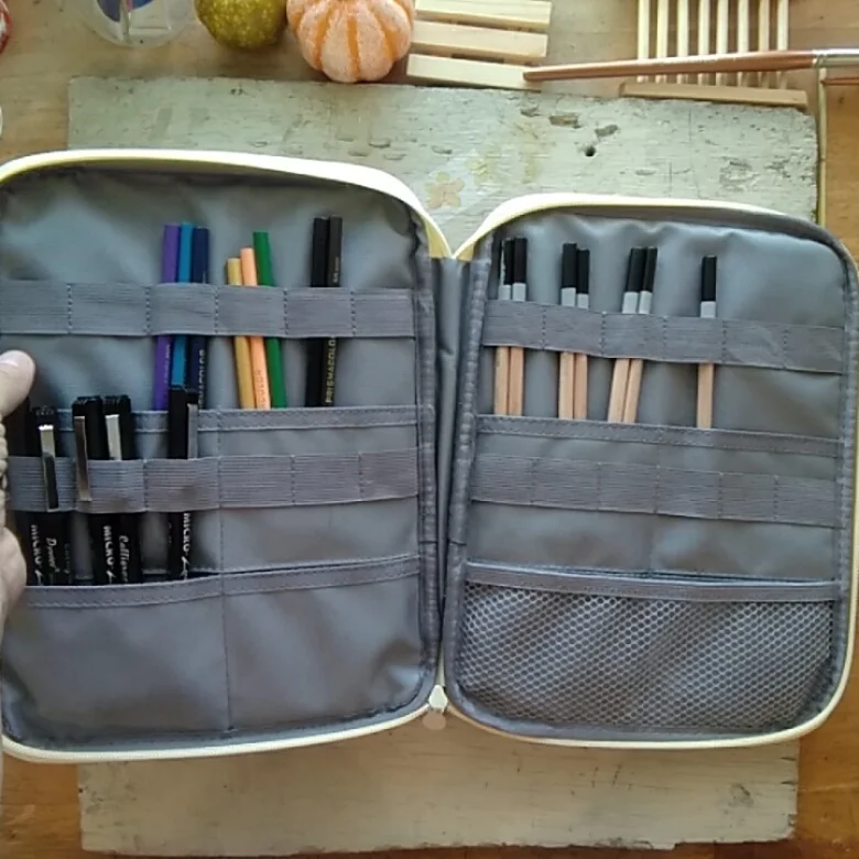 Полностью соответствует описанию, качество замечательное. Мне всё понравилось! для маркеров не очень подходит, они слишком толстые, как вариант можно класть меньше.